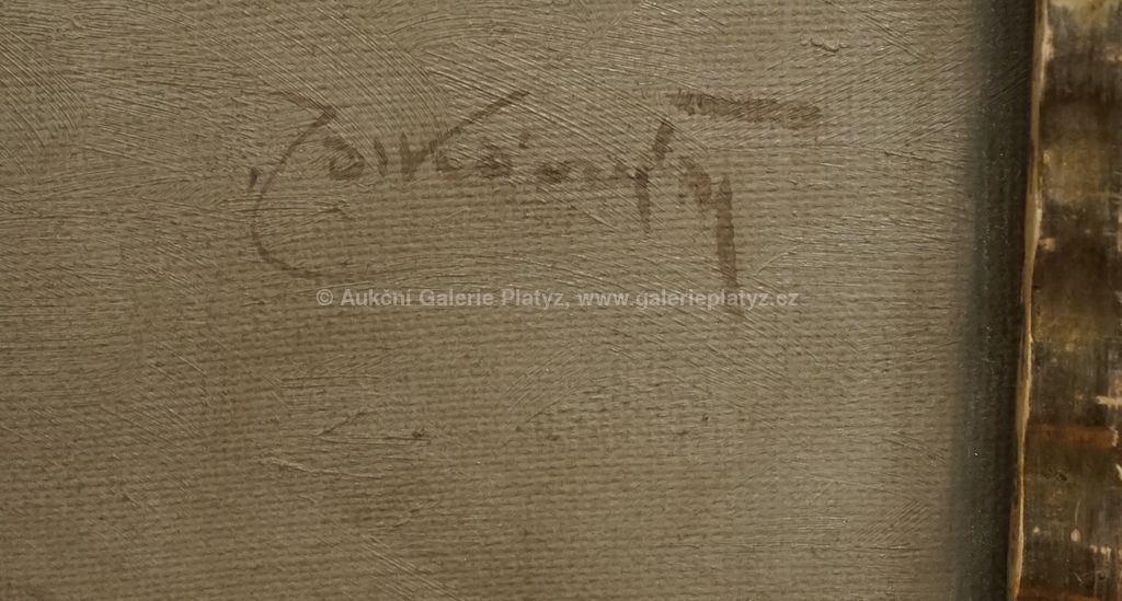 olej/plátno, rozměr 75 x 100 cm, signováno vpravo dole, zaskleno, poškozený dekorativní rám