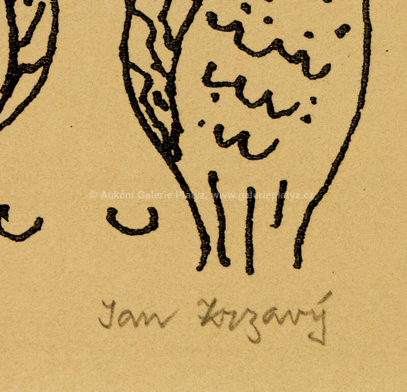 litografie/papír, rozměr ve výřezu 10,5 x 7,5 cm, značeno ve spodní části, paspartováno, zaskleno, rámováno