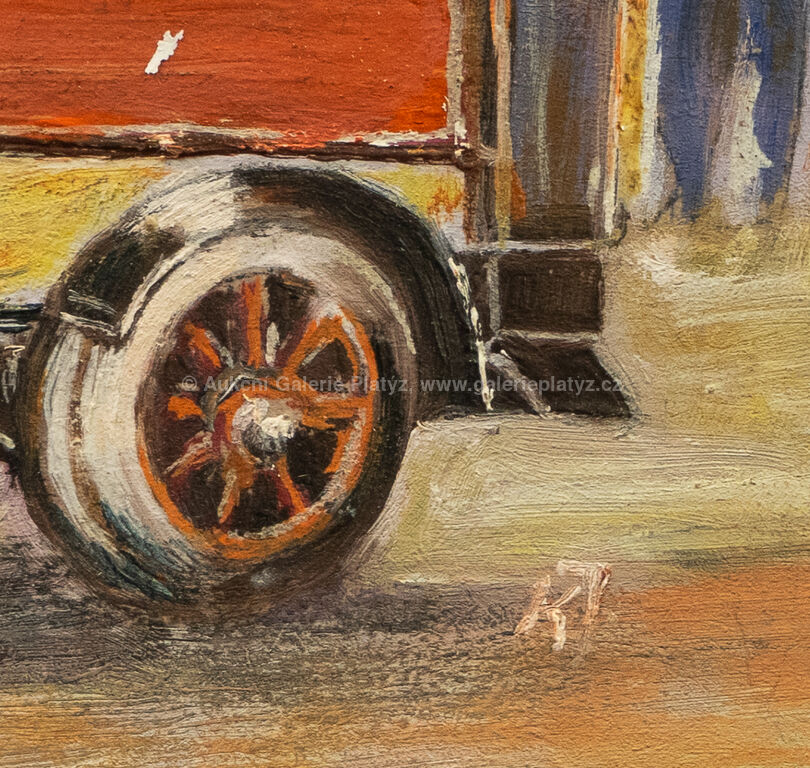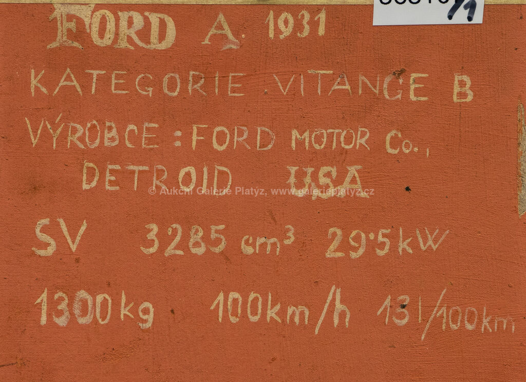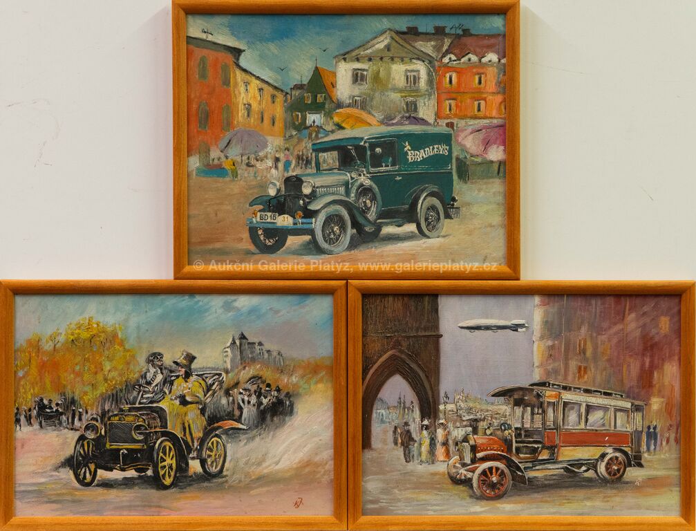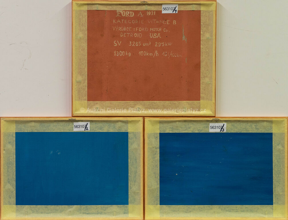 1) Ford A 1931: olej/sololit, rozměr 22,5 x 28 cm, neznačeno, popsáno na zadní straně, rámováno, 2) Na projížďce: olej/sololit, rozměr 20 x 28,5 cm, značeno vpravo dole, rámováno, 3) U mostecké věže: olej/sololit, rozměr 20 x 28,5 cm, značeno vpravo dole, rámováno