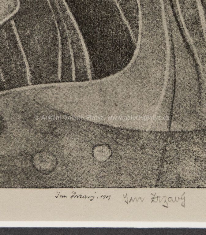 ofset/papír, rozměr ve výřezu 14,5 x 9,5 cm, značeno a datováno ve spodní části v tisku, značeno ve spodní části tužkou, paspartováno, zaskleno, rámováno, drobné oděrky na rámu