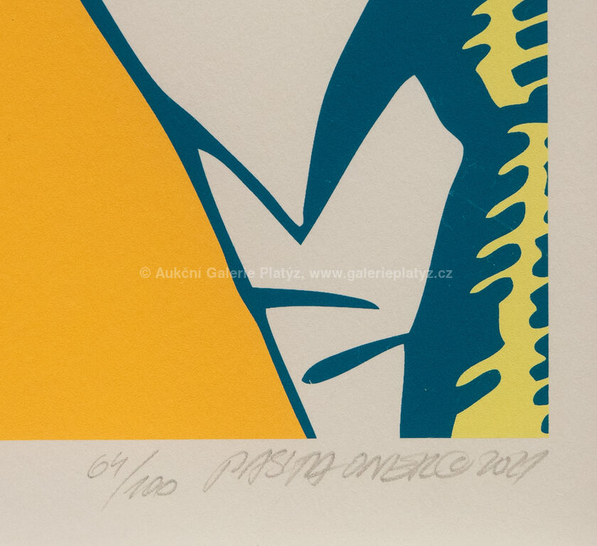 serigrafie/papír, rozměr 50 x 70 cm, značeno, datováno a číslováno vpravo dole, chráněno plexi, rámováno