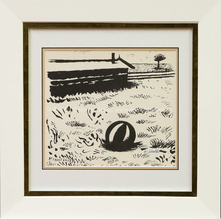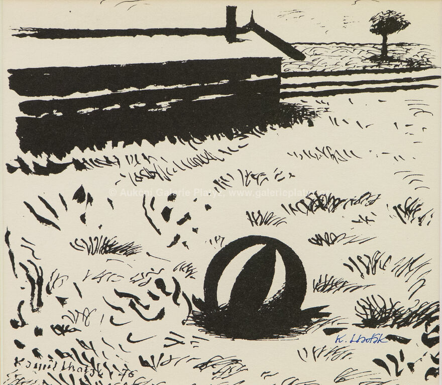 zinkografie/papír, rozměr ve výřezu 20,5 x 23 cm, značeno a datováno vlevo dole v tisku, značeno vpravo dole, paspartováno, zaskleno, rámováno, drobné oděrky na rámu