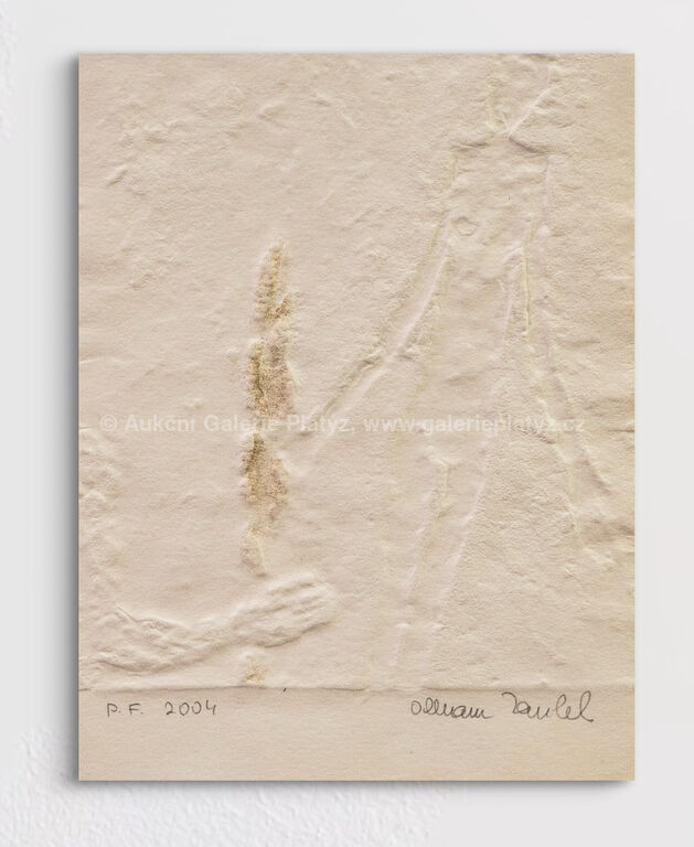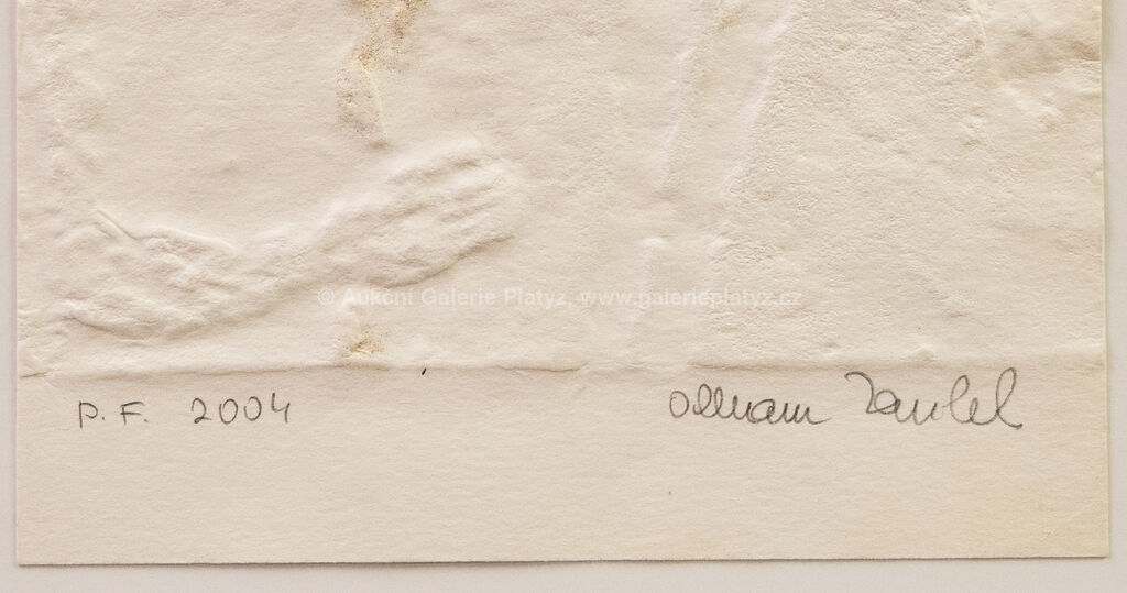 papírový reliéf/ruční papír/zlato, rozměr listu 19,5 x 14,5 cm, značeno a popsáno ve spodní části, volně loženo, konzultováno a pravost potvrzena Nadačním fondem Kmentová Zoubek (vznik 2003)