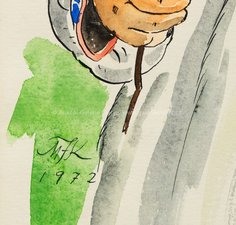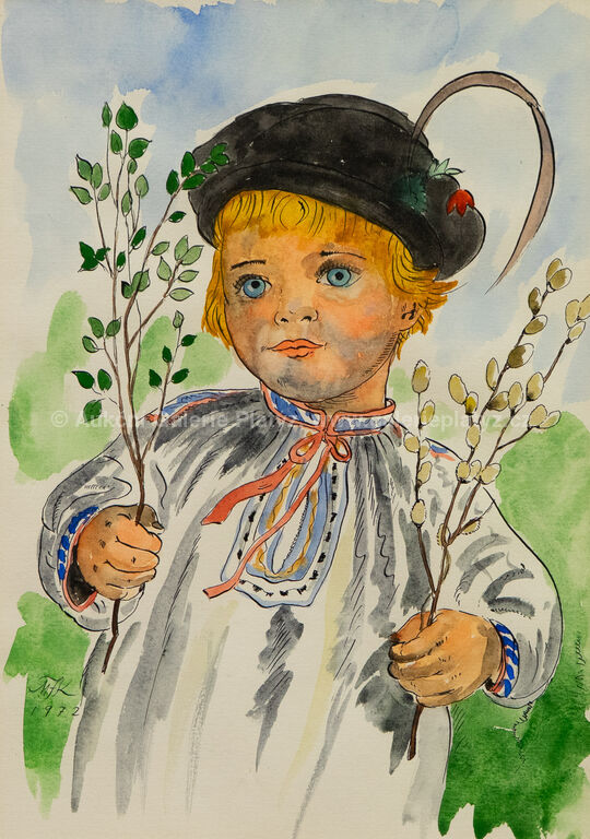 akvarel/papír, rozměr ve výřezu 38,5 x 27 cm, značeno a datováno vlevo dole, paspartováno, zaskleno, rámováno, oděrky na rámu, původní předloha pro pohlednici