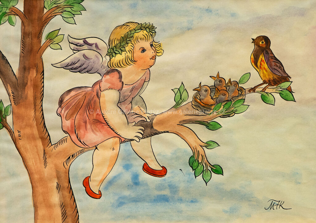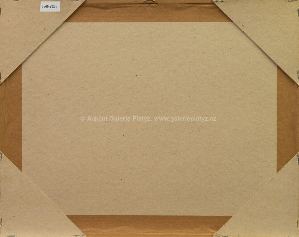 akvarel/papír, rozměr ve výřezu 28 x 40 cm, značeno vlevo dole, paspartováno, zaskleno, rámováno, oděrky na rámu, původní předloha pro pohlednici