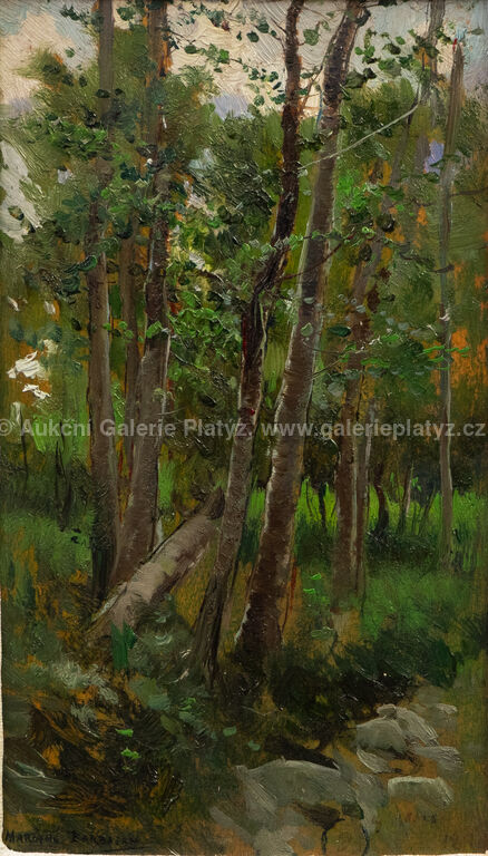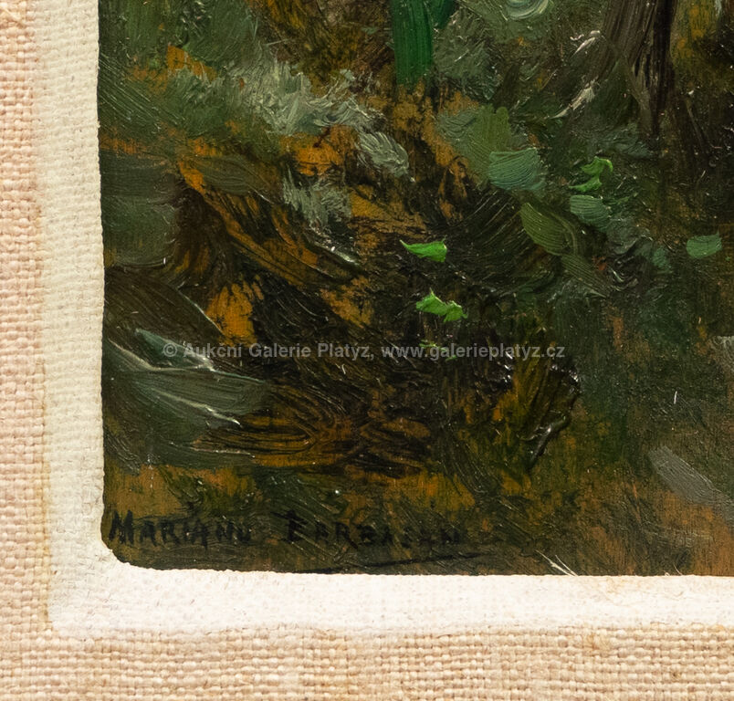 olej/dřevěná deska, rozměr ve výřezu 15,5 x 9 cm, značeno vlevo dole, paspartováno, zaskleno, rámováno, oděrky na rámu