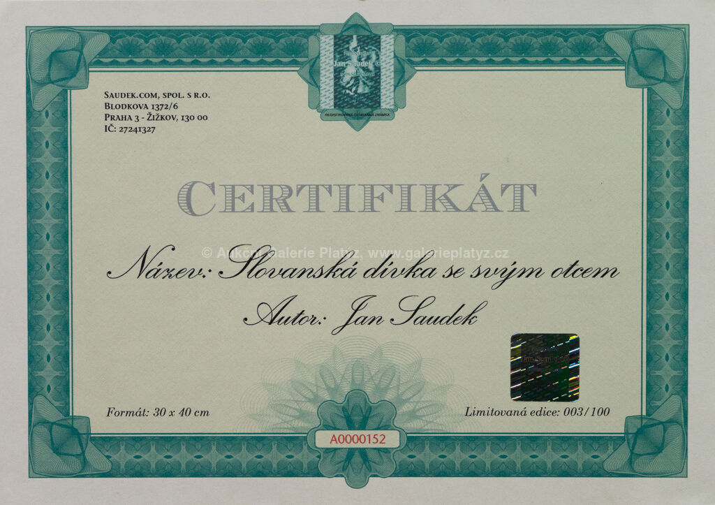 kolorovaná fotografie/papír, rozměr ve výřezu 29 x 39 cm, značeno vlevo dole, paspartováno, zaskleno muzeálním sklem, rámováno, na zadní straně Certifikát vydaný autorem
