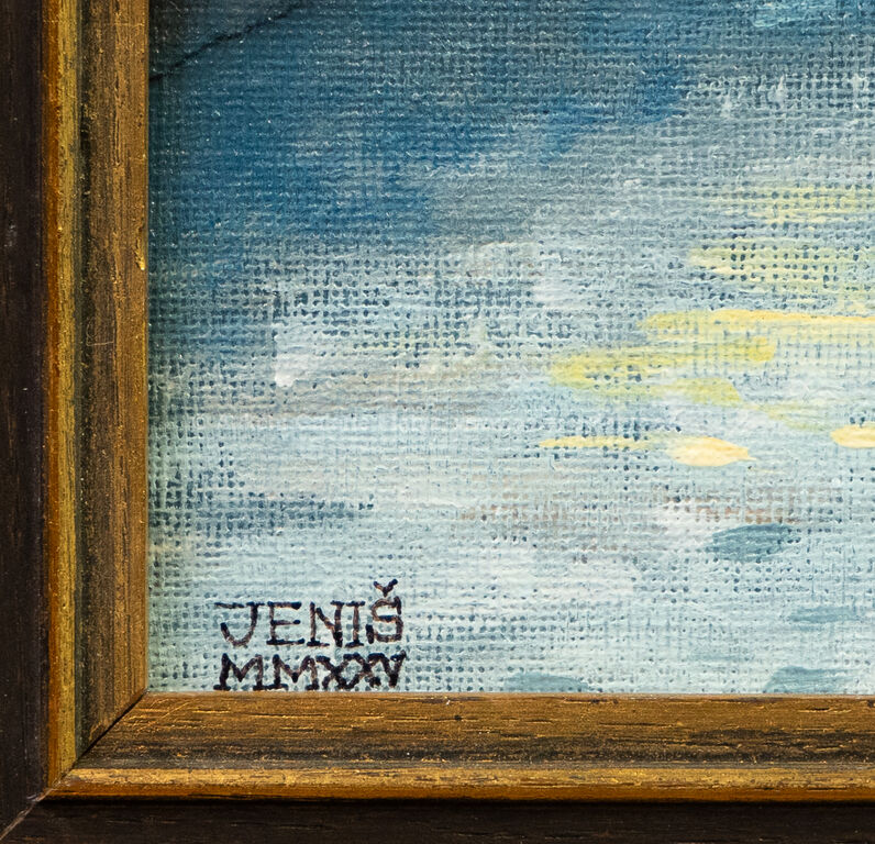 akryl/plátno fixované na kartonu, rozměr 40 x 30 cm, značeno a datováno vlevo dole, rámováno