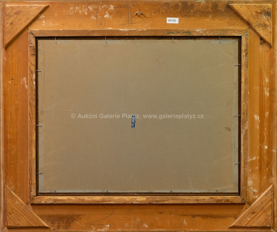 olej/karton, rozměr 50 x 65 cm, značeno vlevo dole, zaskleno, rámováno, poškozený rám