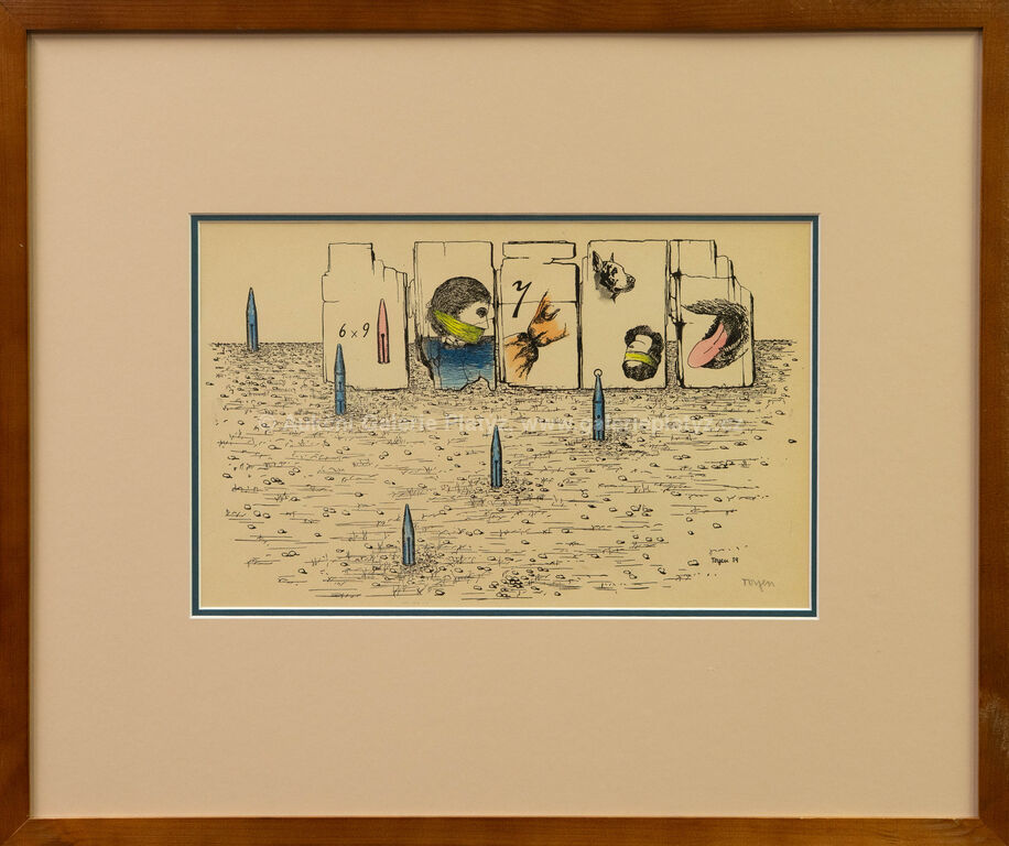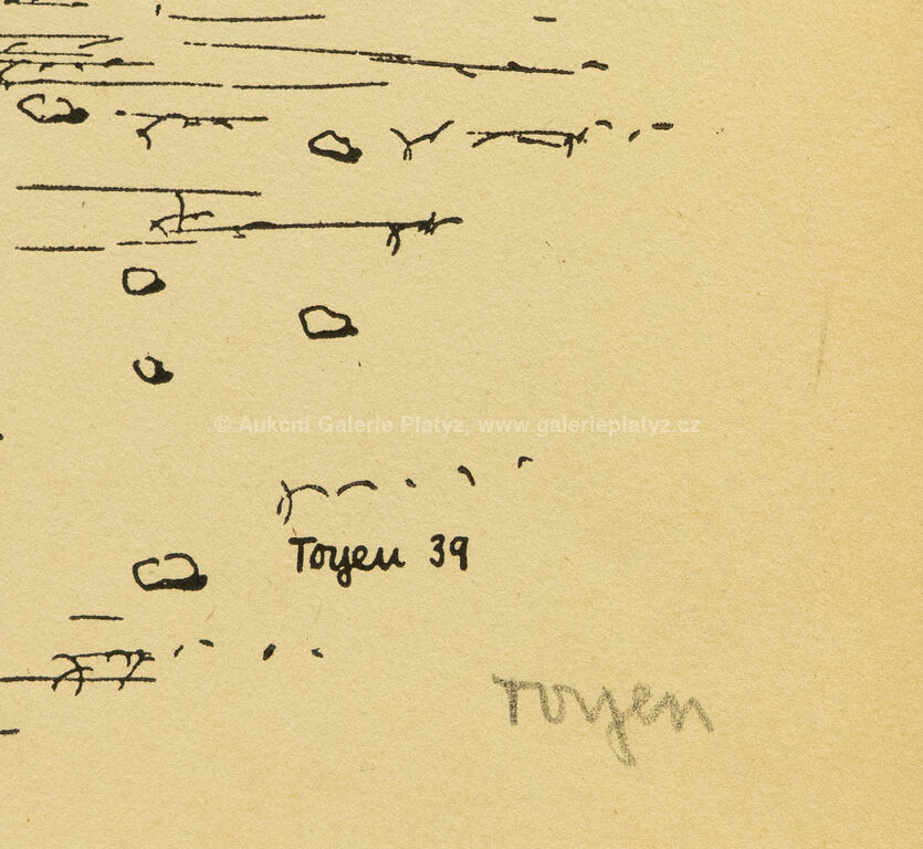 kolorovaná zinkografie/papír, rozměr ve výřezu 24 x 38 cm, značeno a datováno vpravo dole v tisku a vpravo dole tužkou, paspartováno, zaskleno, rámováno