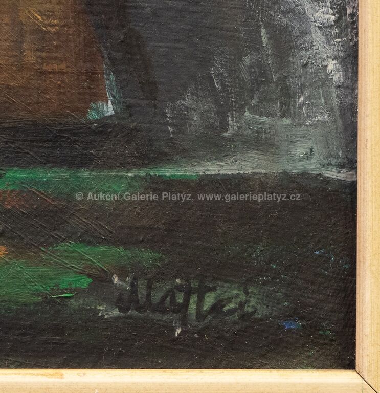 olej/plátno, rozměr 49 x 100 cm, značeno vpravo dole, rámováno, poškozený rám