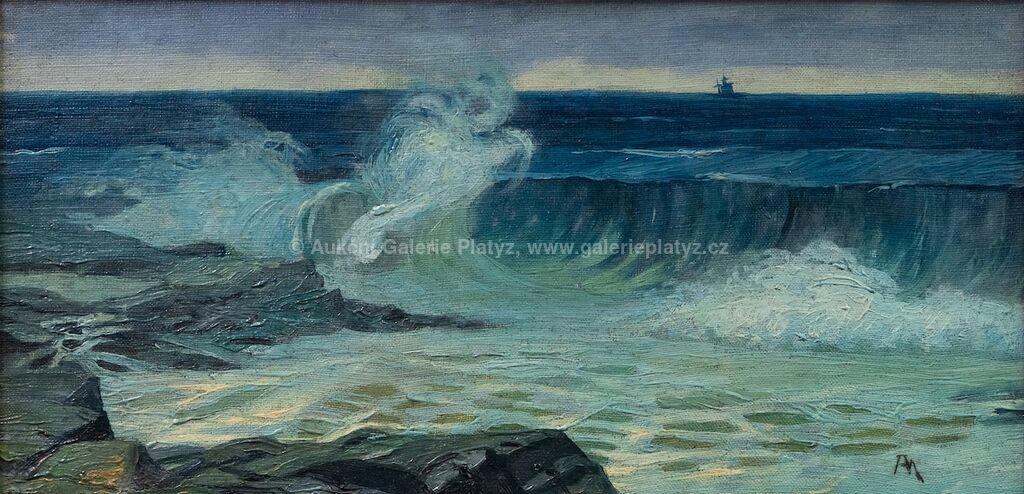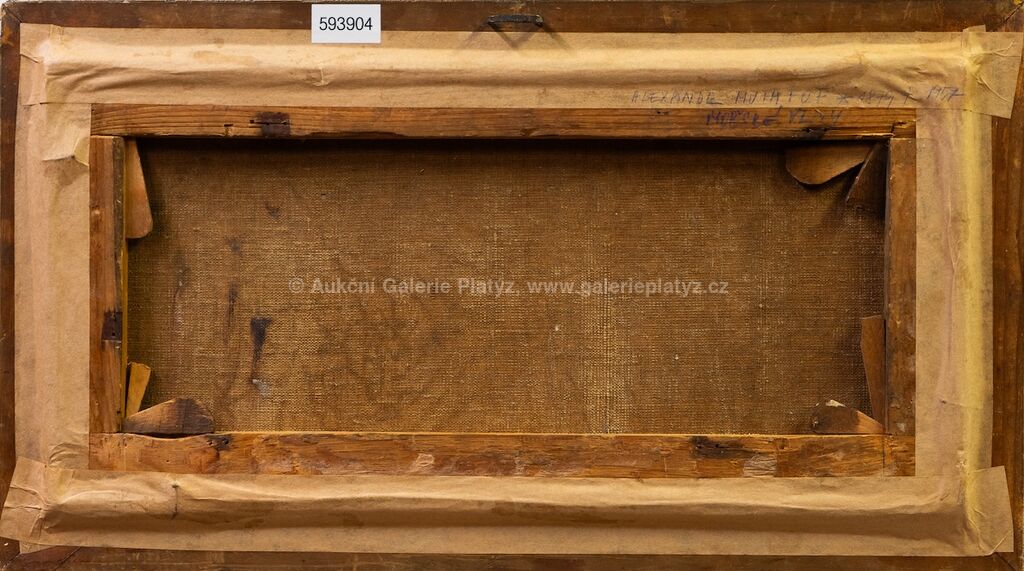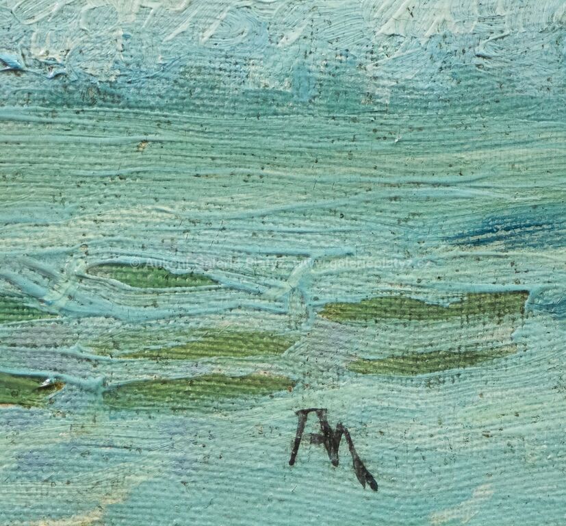 olej/plátno, rozměr 21 x 42,5 cm, značeno vpravo dole, rámováno, poškozený rám