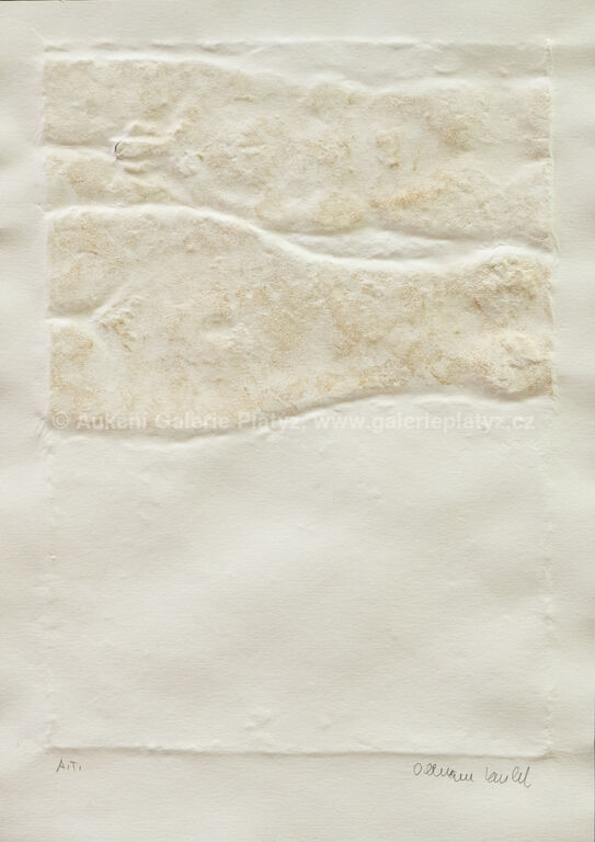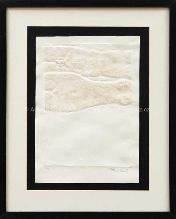 papírový reliéf, ruční papír/zlato, rozměr listu 35 x 24,5 cm, značeno a popsáno ve spodní části, paspartováno, zaskleno, rámováno