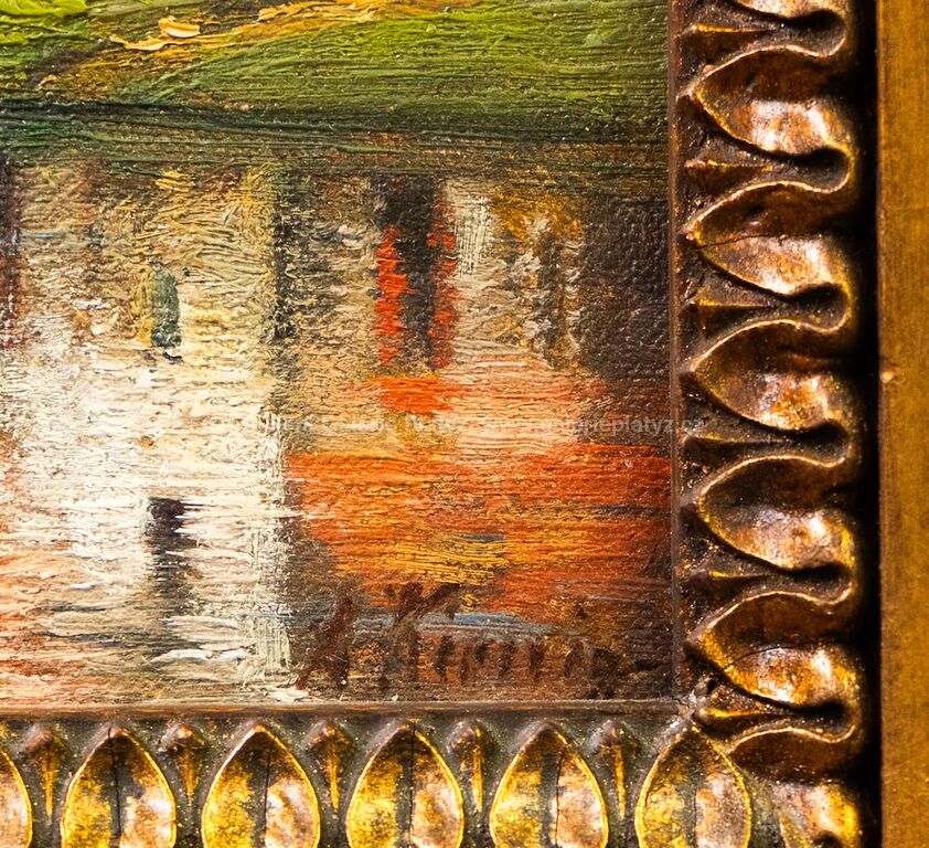 olej/karton, rozměr 21 x 31 cm, značeno vpravo dole, rámováno, oděrky na rámu