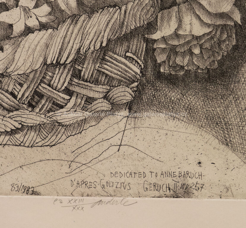 lept/suchá jehla/papír, rozměr tiskové plochy 66 x 49,5 cm, rozměr 82 x 64,5 cm, značeno, číslováno a popsáno ve spodní části, zaskleno, rámováno