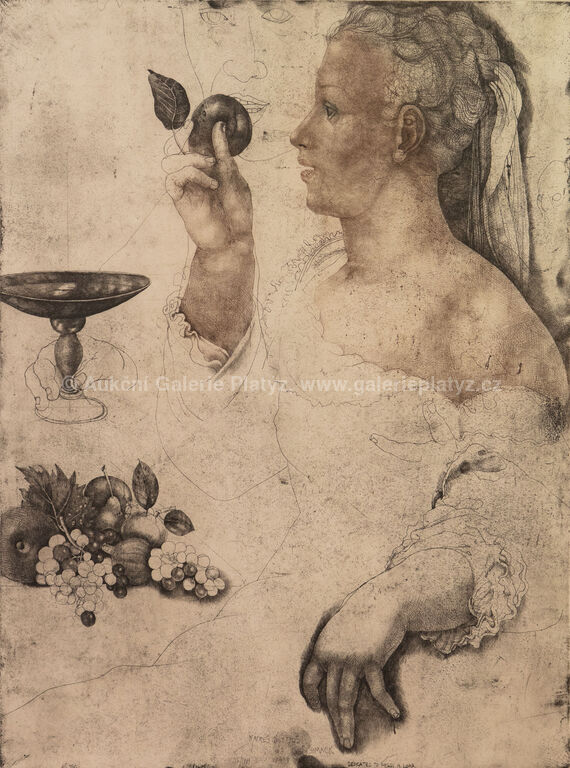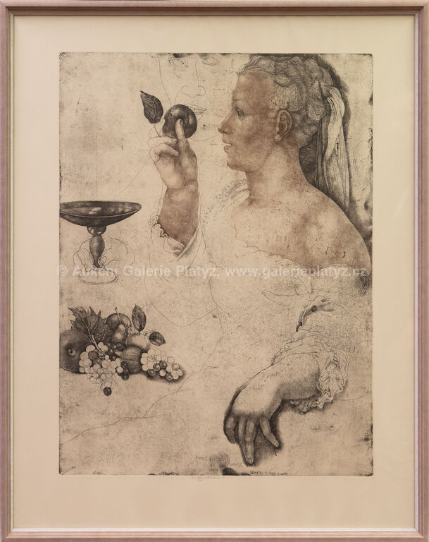 lept/suchá jehla/papír, rozměr tiskové plochy 66,5 x 49,5 cm, rozměr 82 x 64,5 cm, značeno a číslováno ve spodní části, zaskleno, rámováno