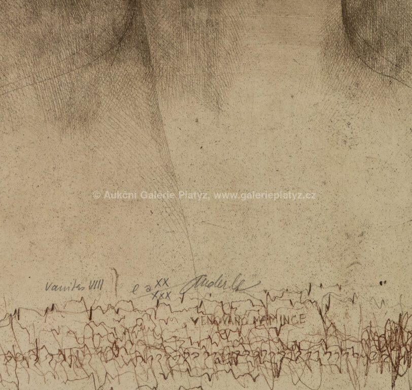 lept/suchá jehla/ruční papír, rozměr listu 95,5 x 64 cm, značeno, číslováno a popsáno ve spodní části, zaskleno mezi dvěma skly, rámováno