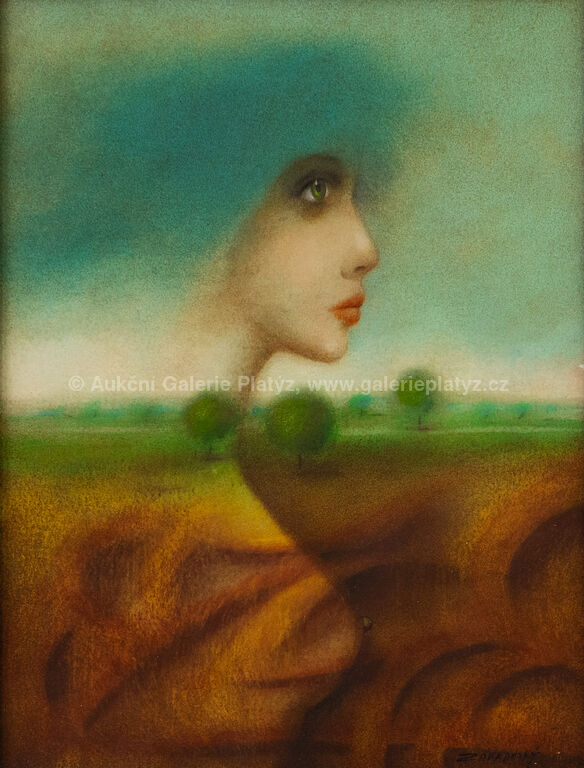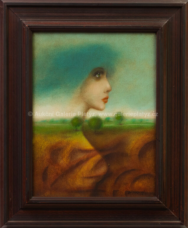 olej/karton, rozměr 40 x 30 cm, značeno vpravo dole, zaskleno, rámováno