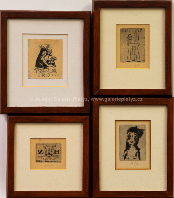 St. Salvator: lept/papír, rozměr listu 8,5 x 7,5 cm, značeno a datováno ve spodní části, paspartováno, zaskleno, rámováno, Ex libris ZH: suchá jehla/papír, rozměr ve výřezu 7 x 8 cm, značeno a datováno ve spodní části, paspartováno, zaskleno, rámováno, Svatební oznámení: suchá jehla/papír, rozměr ve výřezu 10 x 7,5 cm, značeno a datováno ve spodní části, paspartováno, zaskleno, rámováno, Ilustrace k básním F. Bárty: suchá jehla/papír, rozměr ve výřezu 10,5 x 8 cm, značeno a datováno ve spodní části, paspartováno, zaskleno, rámováno, díla uvedena v soupisu graf. díla Fr. Tichého pod čísly 80, 194, 235 a 54.