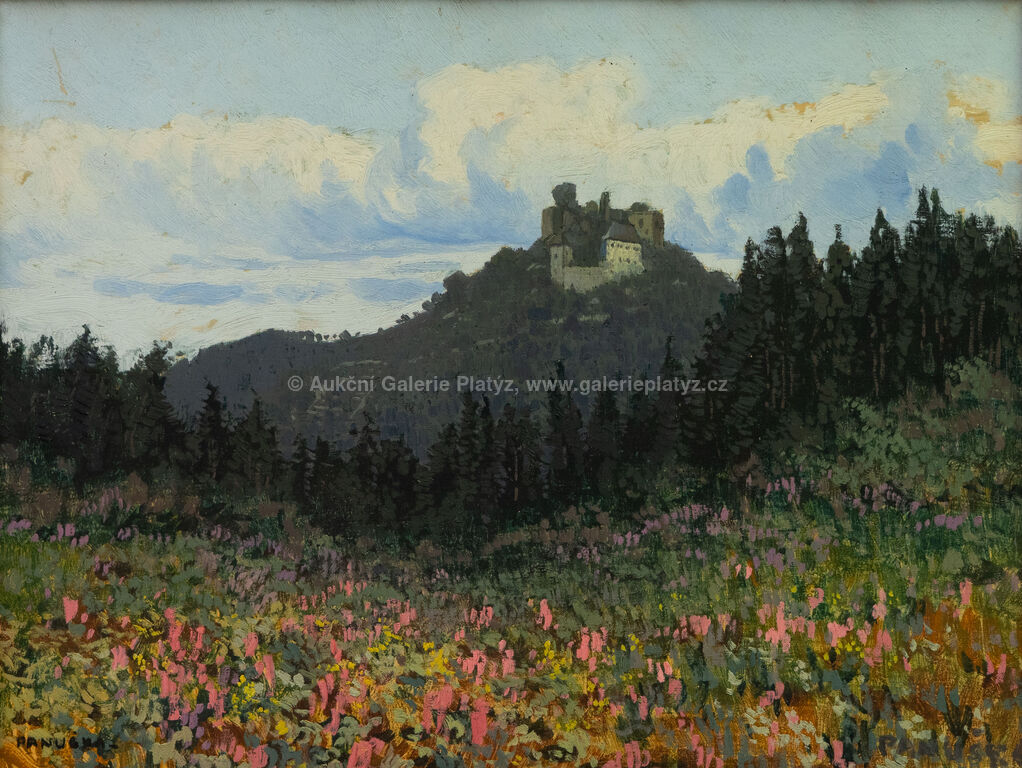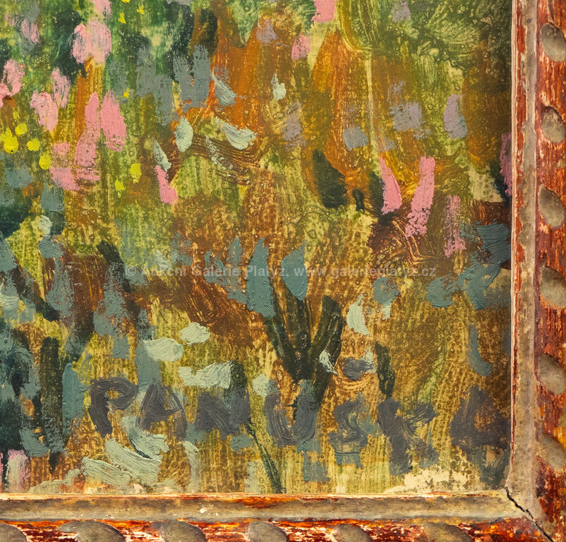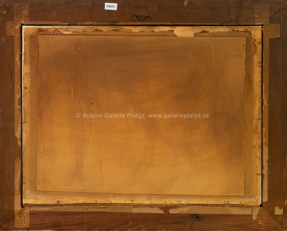 olej/karton, rozměr 49 x 66 cm, značeno vpravo i vlevo dole, zaskleno, rámováno, oděrky na rámu, oděrky v malbě, konzultováno a pravost potvrzena PhDr. Mgr. Michaelem Zachařem