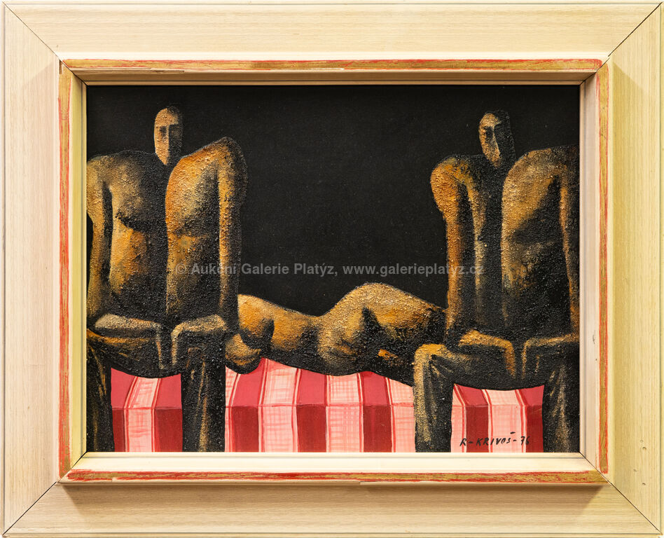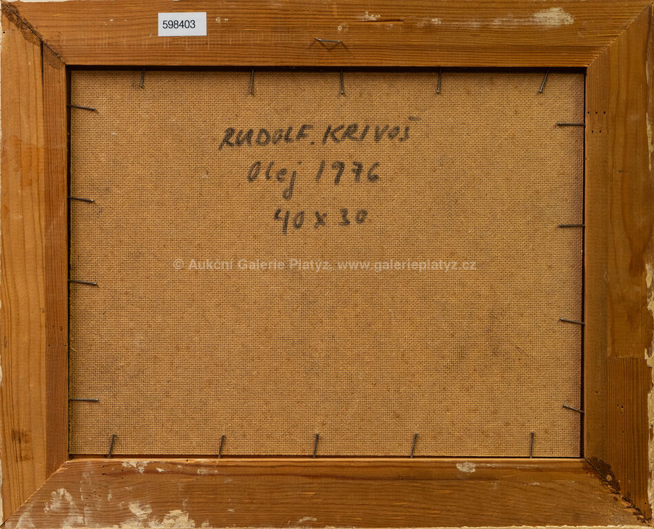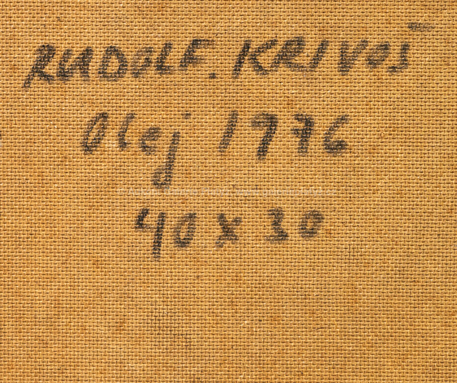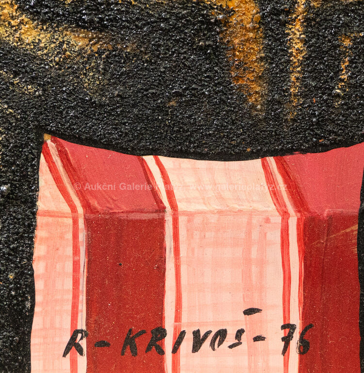 kombinovaná technika, olej/písek/sololit, rozměr 30 x 40 cm, značeno a datováno vpravo dole, rámováno, poškozený rám