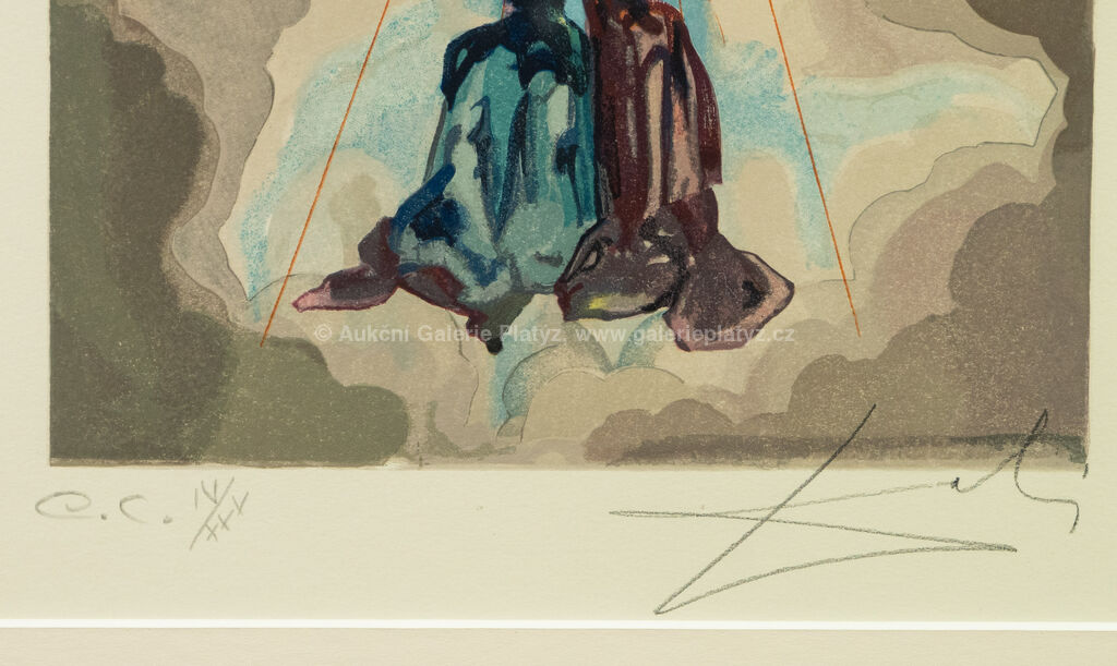 barevný dřevoryt/papír, rozměr ve výřezu 29,5 x 23 cm, značeno vpravo dole, číslováno 4/30 a popsáno ve spodní části, paspartováno, zaskleno, rámováno, oděrky na rámu, edice Les Heures Claires