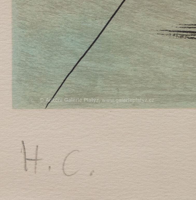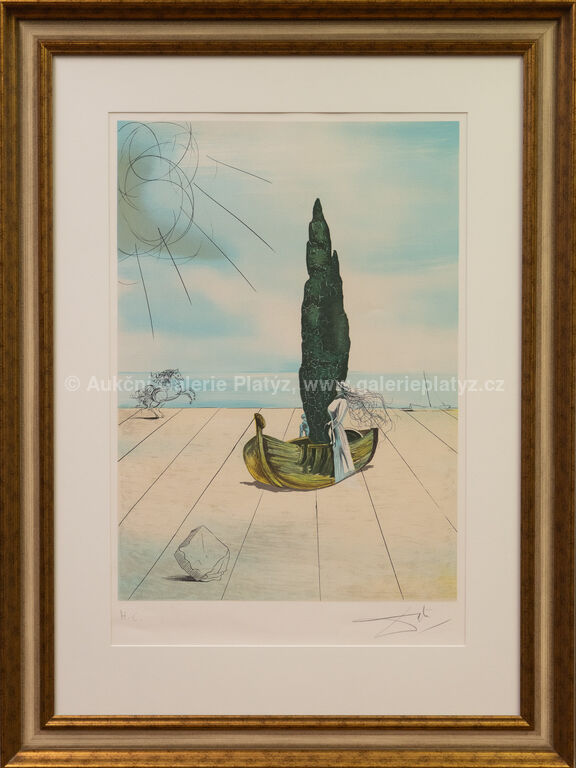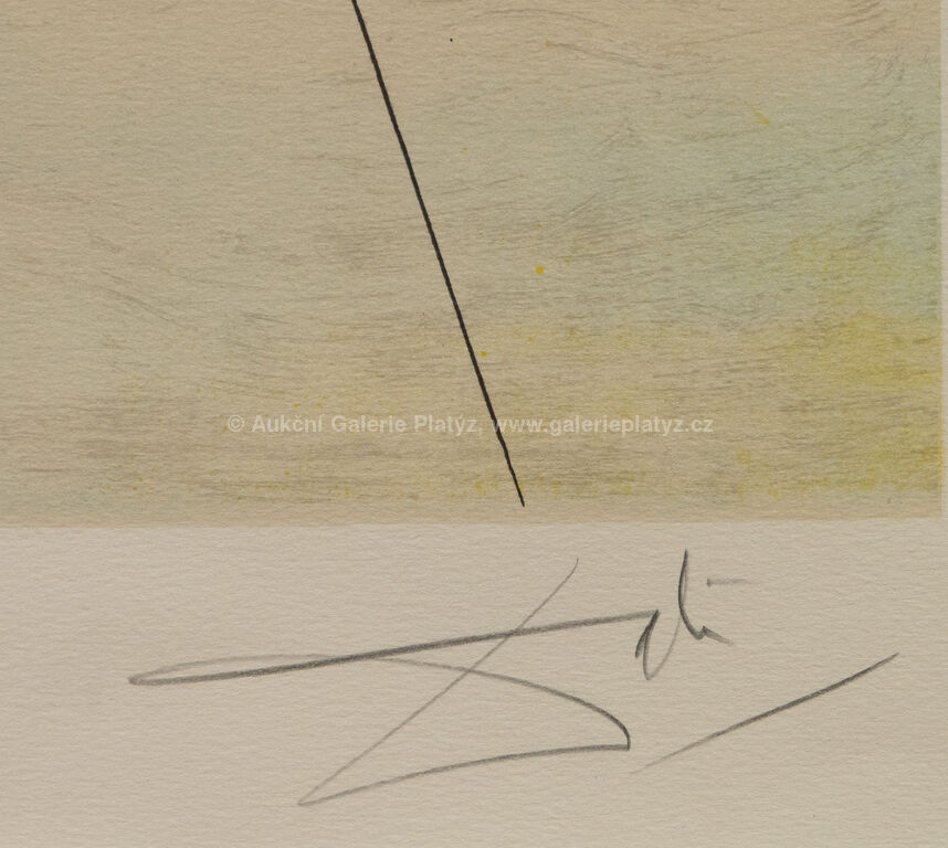 litografie/ruční papír, rozměr ve výřezu 68,5 x 45 cm, značeno a popsáno ve spodní části, paspartováno, zaskleno, rámováno, publikováno v Luis Romero, Todo Dalí en un rostro, Blume, Madrid, Barcelona, 1975, str. 209