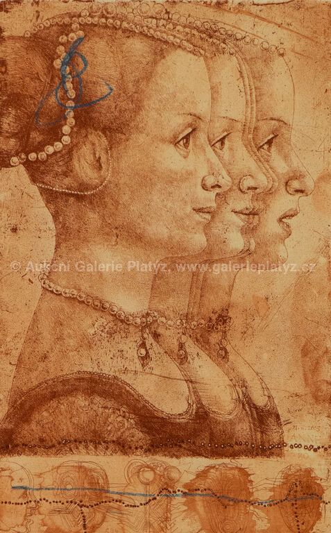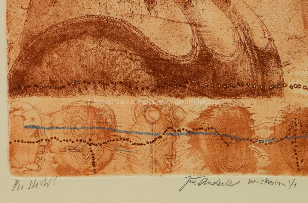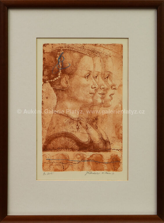 lept/papír, varianta s kresbou, rozměr ve výřezu 25,5 x 16,5 cm, značeno, číslováno a popsáno ve spodní části 1/1, paspartováno, zaskleno, rámováno