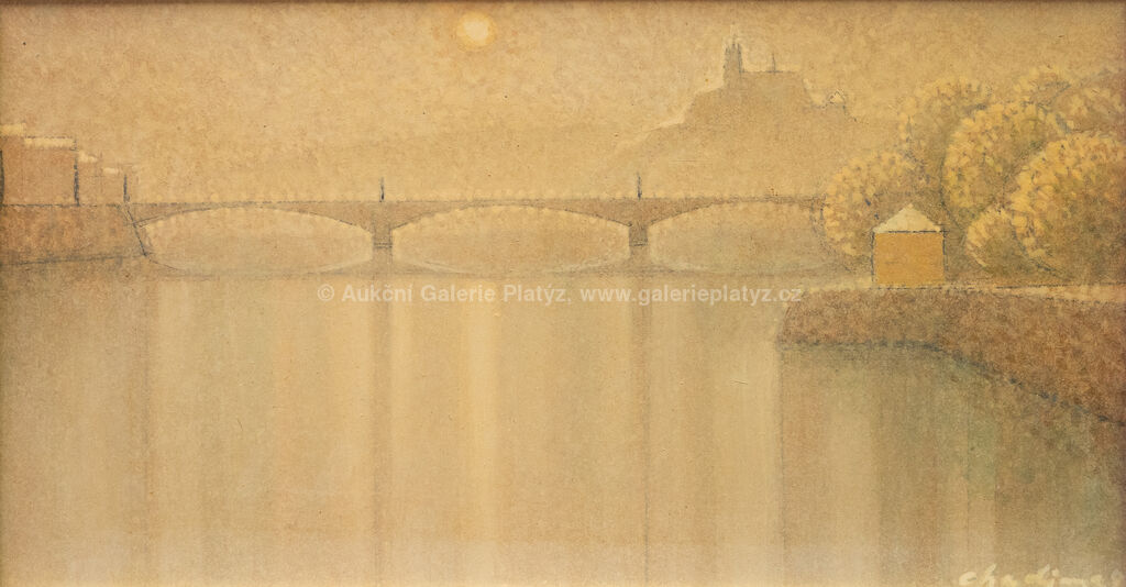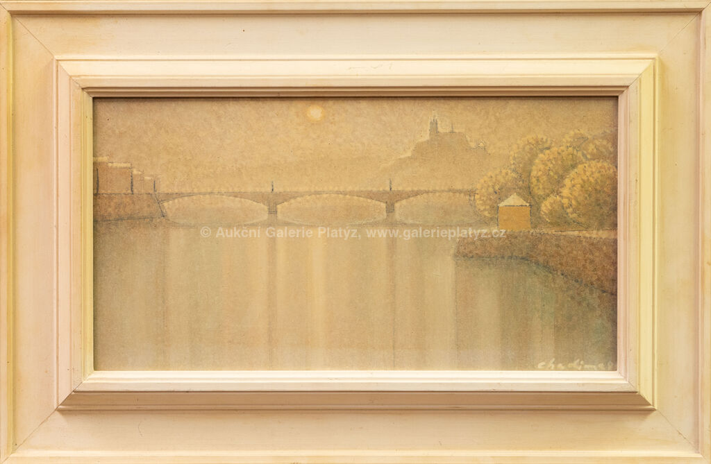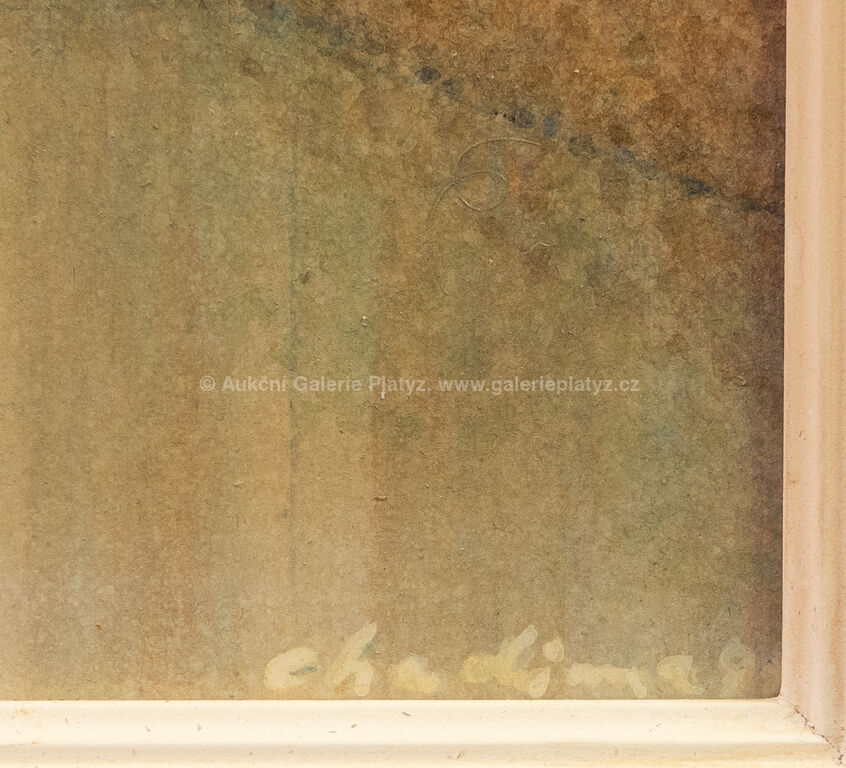 tempera/sololit, rozměr 21 x 39,5 cm, značeno a datováno vpravo dole, rámováno, oděrky na rámu