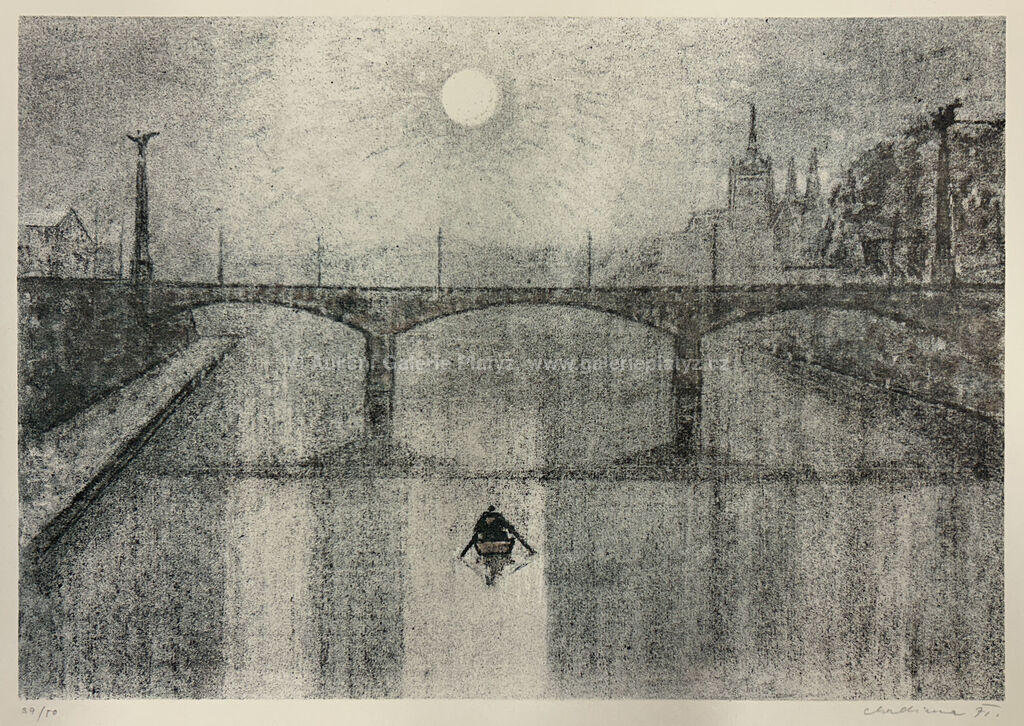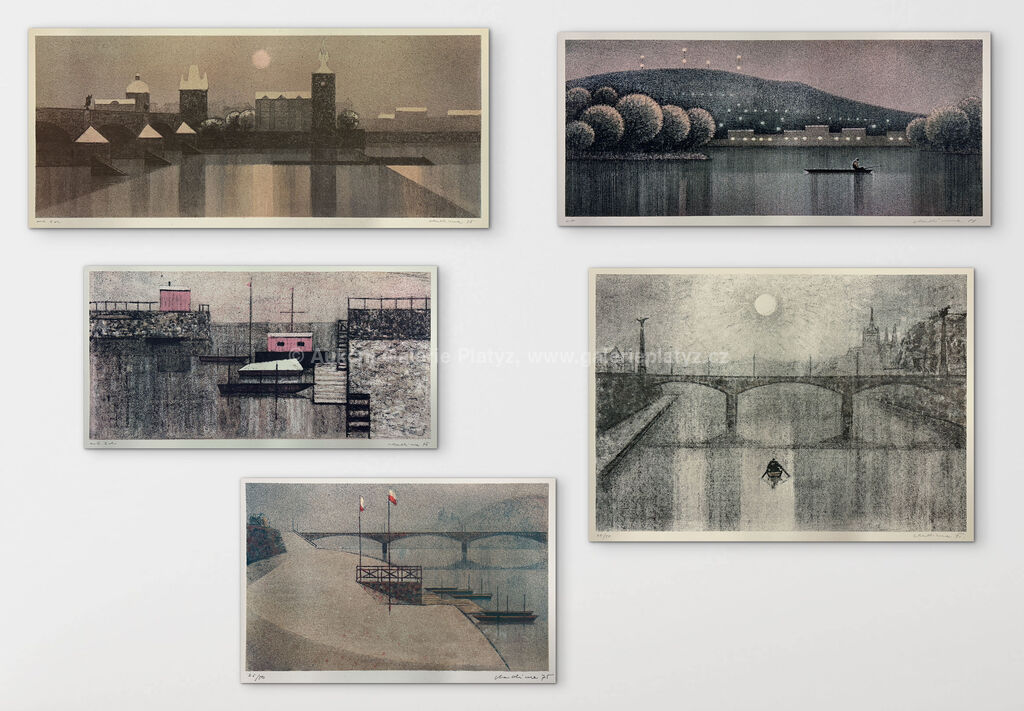 litografie/papír, uvedeny vždy rozměry listu, značeno, datováno a číslováno ve spodní části, všechny litografie volně loženy: 1) Praha pod sněhem, 26,3 x 54,3 cm, autorský tisk, 2) Večer na řece, 25,5, x 45 cm, autorský tisk, 3) Loďky, 24 x 41 cm, autorský tisk, 4) Pod mostem, 36 x 45 cm, 5) Na nábřeží, 27 x 39,5 cm