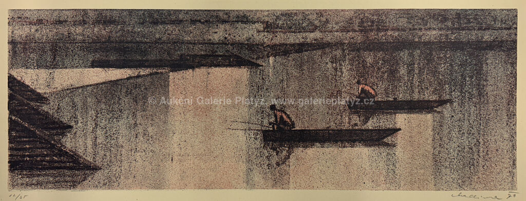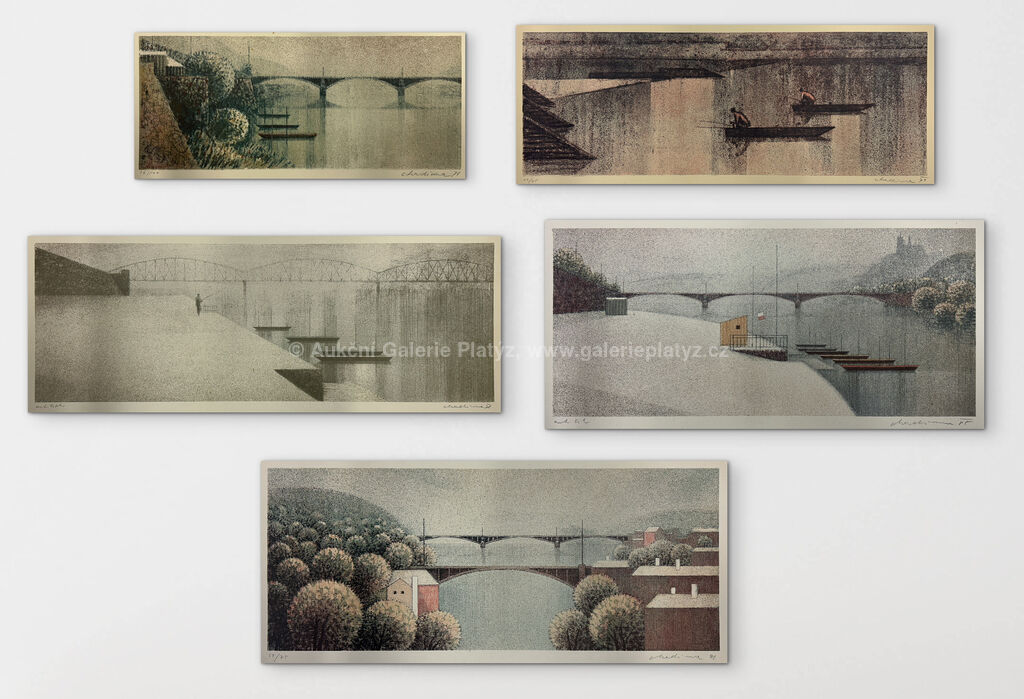 litografie/papír, uvedeny vždy rozměry listu, značeno, datováno a číslováno ve spodní části, všechny litografie volně loženy: 1) Na břehu, 17,8 x 34,3 cm, 2) Rybáři, 19,4 x 46 cm, 3) Ráno u řeky, 21,5 x 51,8 cm, autorský tisk, 4) Podzim nad řekou, 24,7 x 51 cm, 5) Půjčovna loděk, 25,2 x 40 cm, autorský tisk