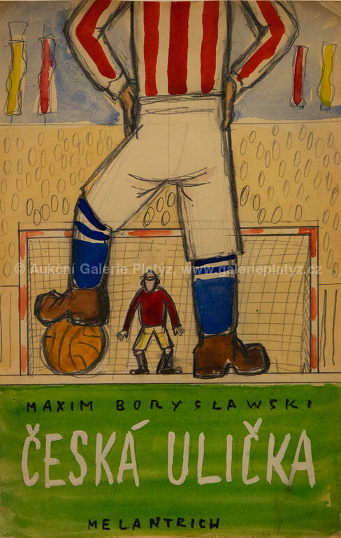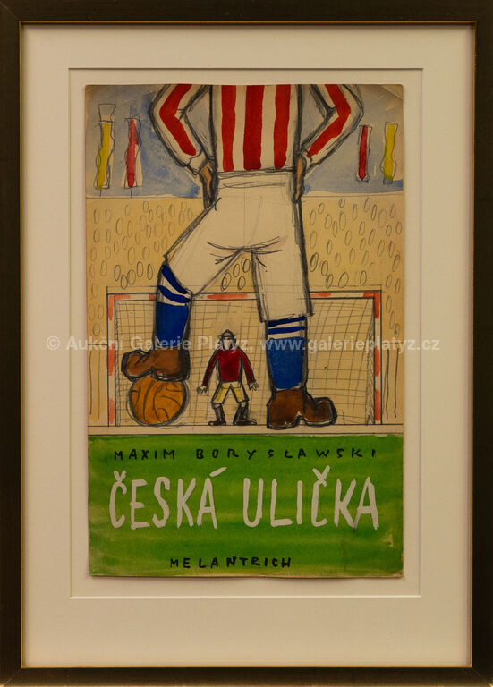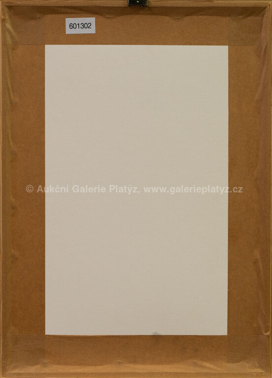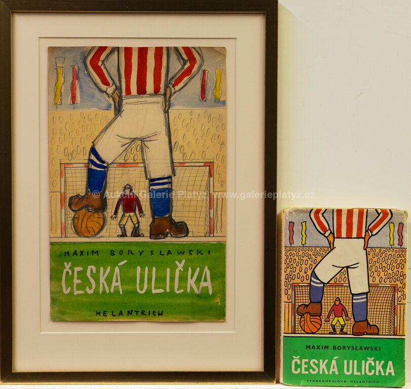 kombinovaná technika, akvarel/tužka/papír, rozměr listu 31 x 20 cm, neznačeno, paspartováno, zaskleno, rámováno, předloha pro obálku knihy Česká ulička, autor Maxim Boryslawski, vyd. Melantrich 1958, ilustroval J.W. Neprakta, kniha přiložena
