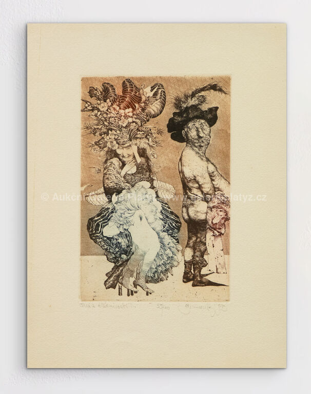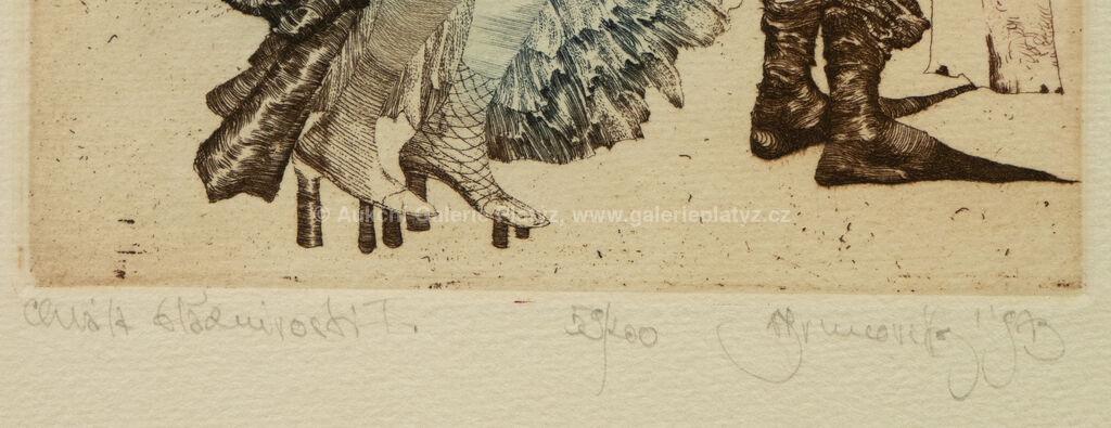 barevný lept/ruční papír, rozměr listu 34,5 x 26 cm, značeno, datováno, číslováno a popsáno ve spodní části, volně loženo, publikováno v monografii autora Albín Brunovský - Kompletné grafické dielo 1960 - 1997 pod č. 373
