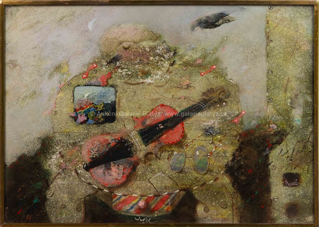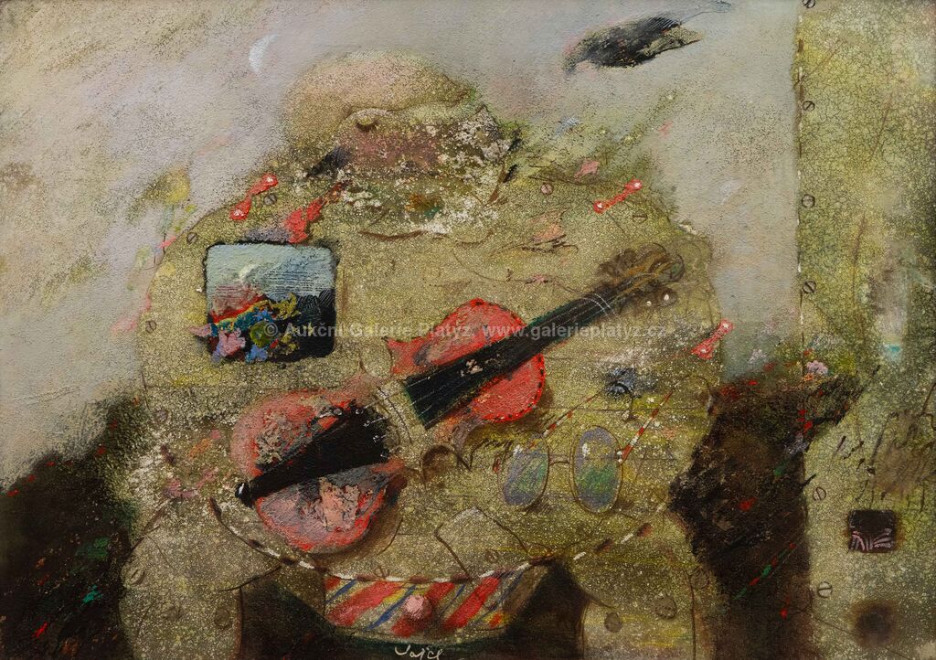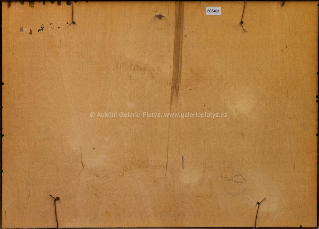 kombinovaná technika/překližka, rozměr 50 x 69 cm, značeno ve spodní části, zaskleno, rámováno