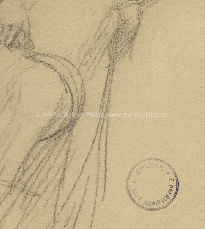 tužka/papír, rozměr ve výřezu 23 x 17 cm, značeno vpravo dole pozůstalostním razítkem, paspartováno, zaskleno, rámováno, poškozený rám