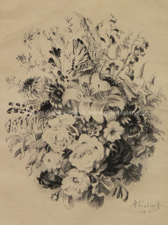 litografie/papír, rozměr ve výřezu 19 x 14 cm, značeno a datováno vpravo dole v tisku, značeno ve spodní části tužkou, paspartováno, zaskleno, rámováno