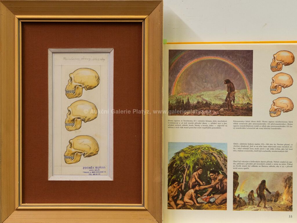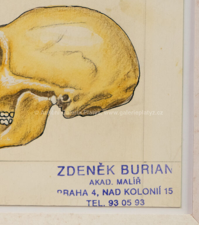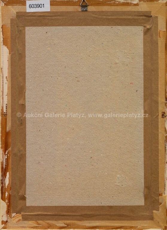 kvaš/papír, rozměr listu 20 x 9 cm, značeno vpravo dole autorským razítkem, paspartováno, zaskleno, rámováno, oděrky na rámu, publikováno v knize Dějiny psané kamenem, naps. J. Kleibl, str. 33