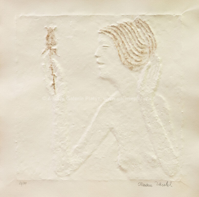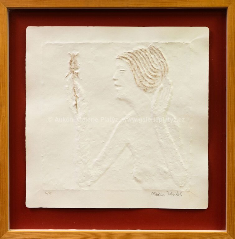 papírový reliéf/ruční papír/zlato, rozměr listu 42 x 42 cm (VĚTŠÍ FORMÁT), značeno a číslováno ve spodní části, zaskleno, rámováno, vznik 2009, konzultováno a pravost potvrzena Nadačním fondem Kmentová Zoubek
