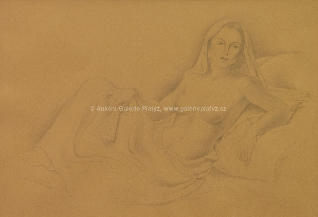 tužka/papír, rozměr ve výřezu 36,5 x 53 cm, značeno a popsáno vpravo dole, paspartováno, zaskleno, rámováno, oděrky na rámu
