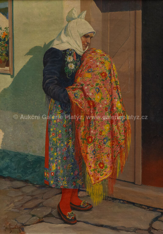 olej/plátno, rozměr 70 x 50 cm, značeno vlevo dole, rámováno, poškozený rám