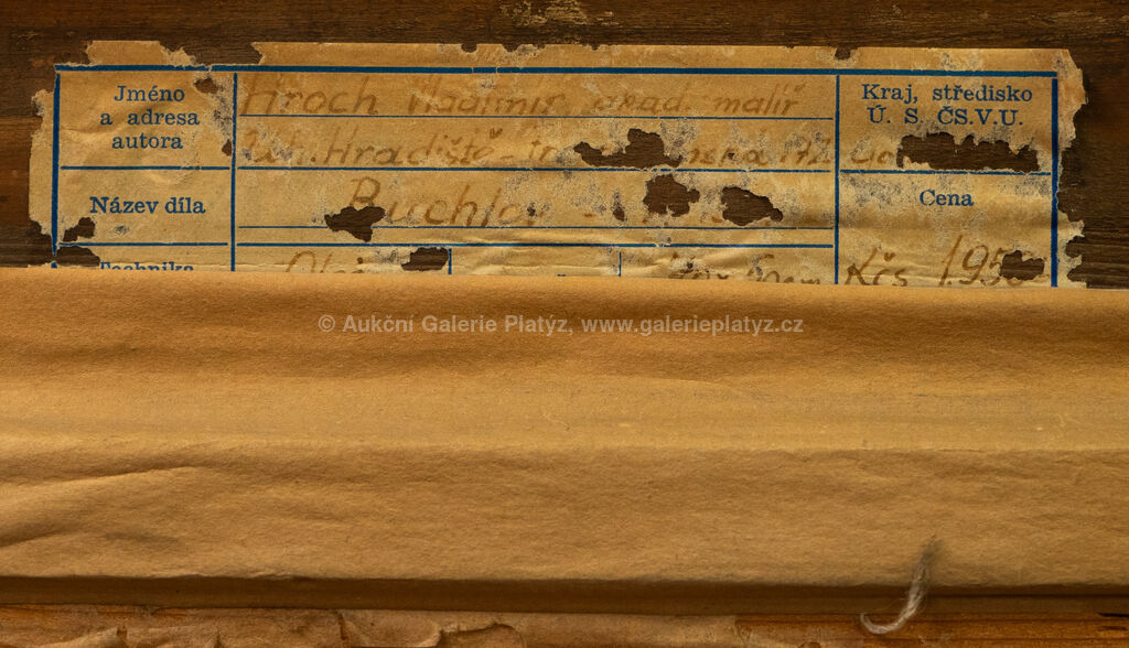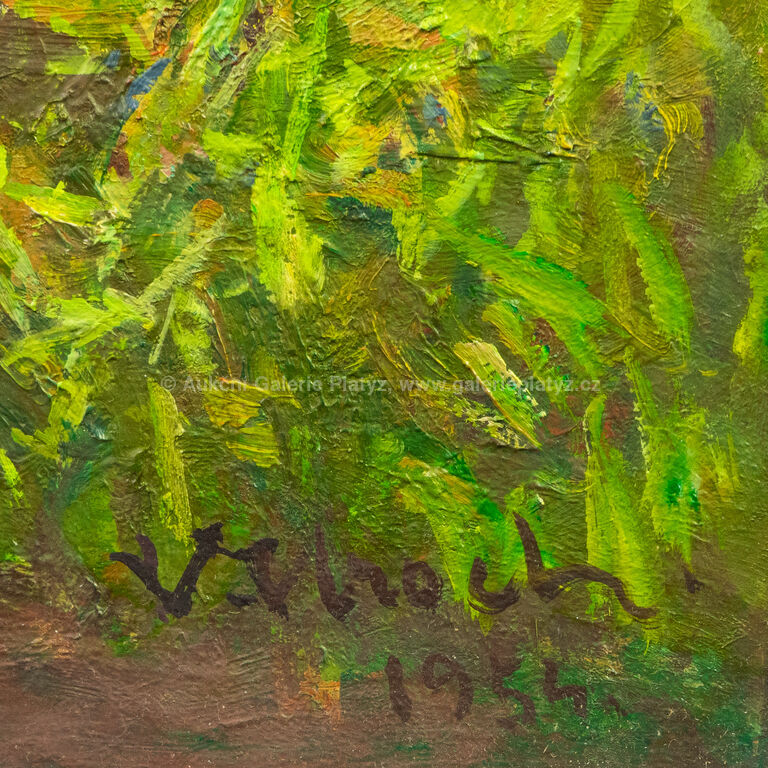 olej/plátno, rozměr 50 x 70 cm, značeno a datováno vpravo dole, zaskleno, rámováno, přiložen původní nabývací dokument (1956)