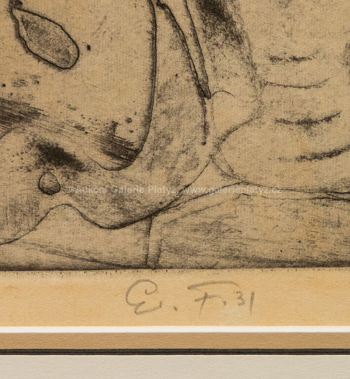 lept/papír, rozměr ve výřezu 16,5 x 20,5 cm, značeno a datováno ve spodní části, paspartováno, zaskleno, rámováno