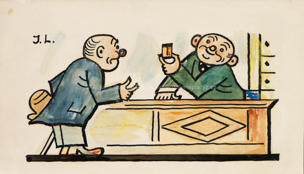 akvarel/tuš/papír, rozměr listu 8,5 x 15 cm, značeno vlevo nahoře, volně loženo