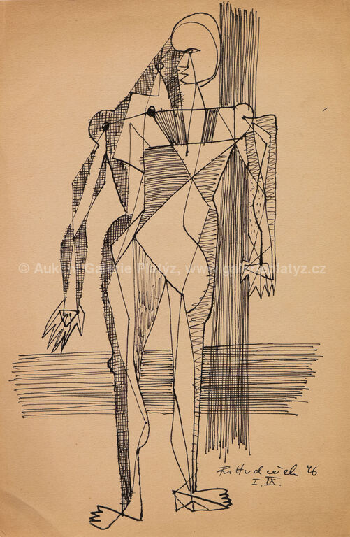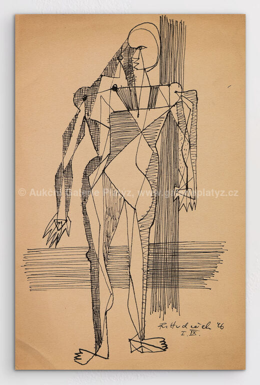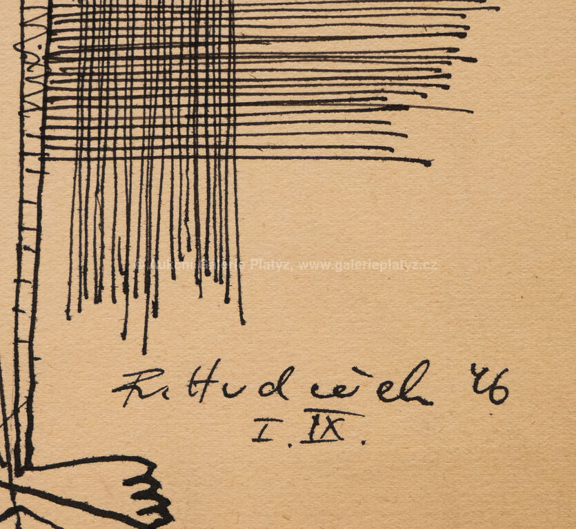 tuš/papír, rozměr listu 33,5 x 22,5 cm, značeno a datováno vpravo dole, volně loženo