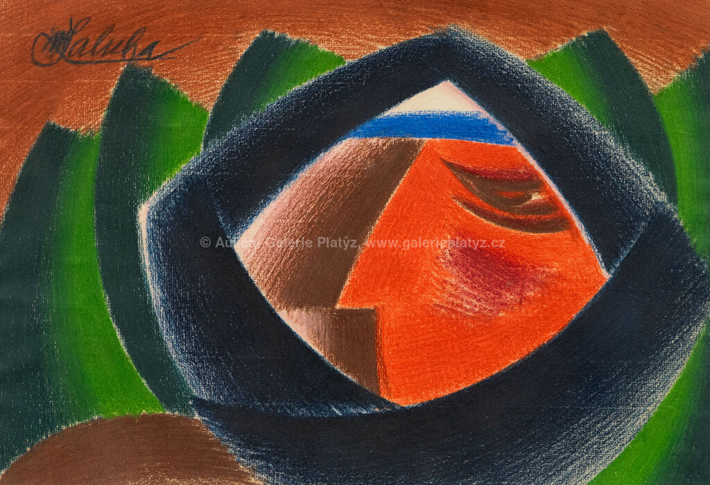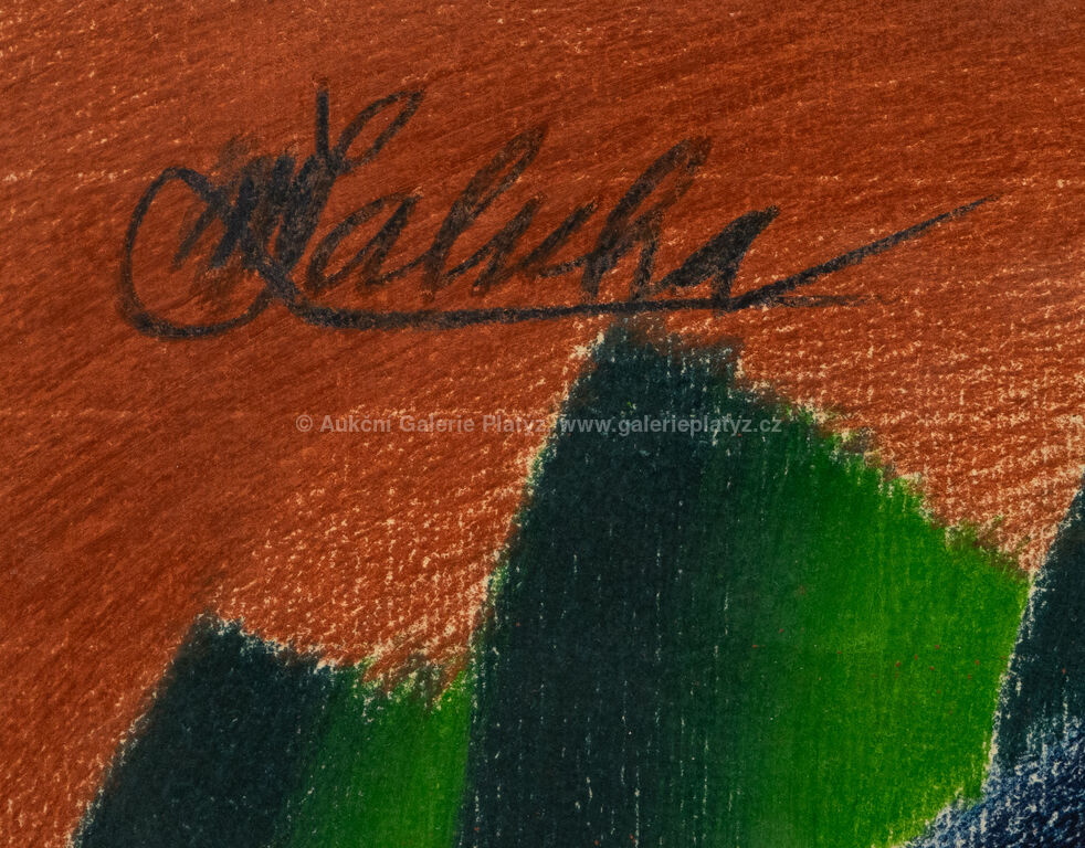 pastel/papír, rozměr ve výřezu 27,5 x 40 cm, značeno vlevo nahoře, paspartováno, zaskleno