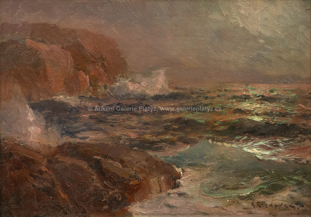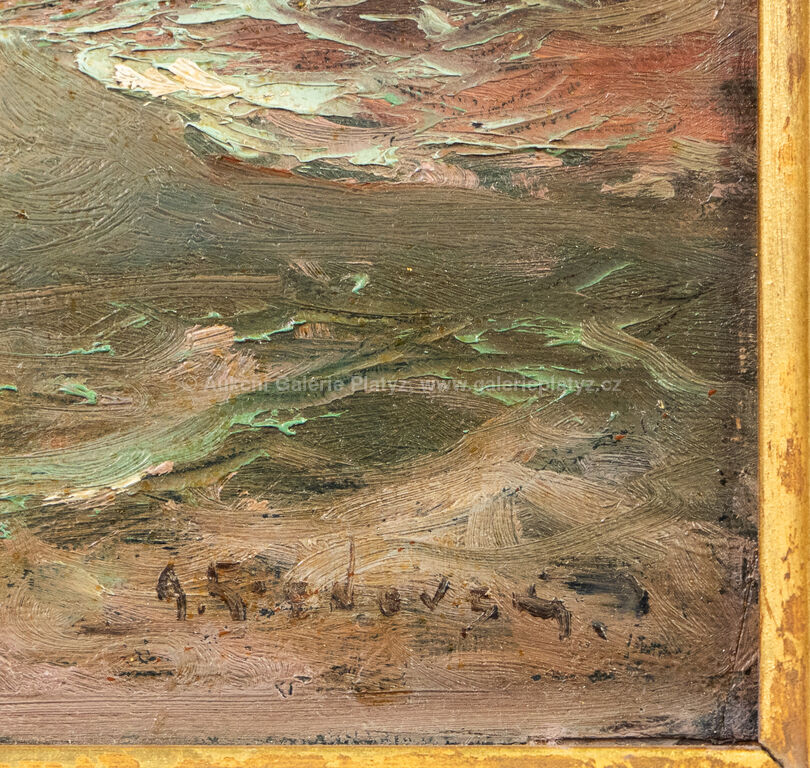 olej/karton, rozměr 25 x 35 cm, značeno vpravo dole, rámováno, drobné oděrky na rámu