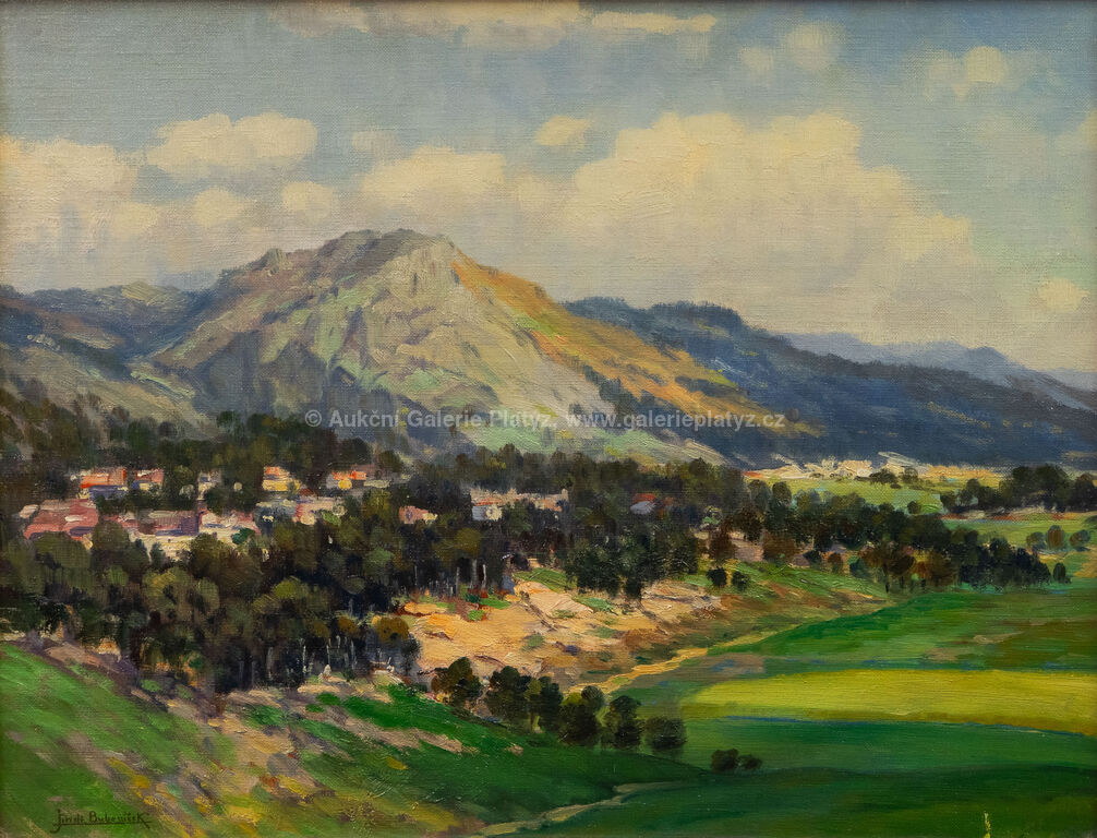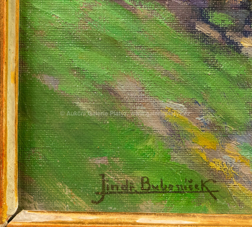 olej/plátno fixované na kartonu, rozměr 43 x 56 cm, značeno vlevo dole, zaskleno, rámováno, oděrky na rámu