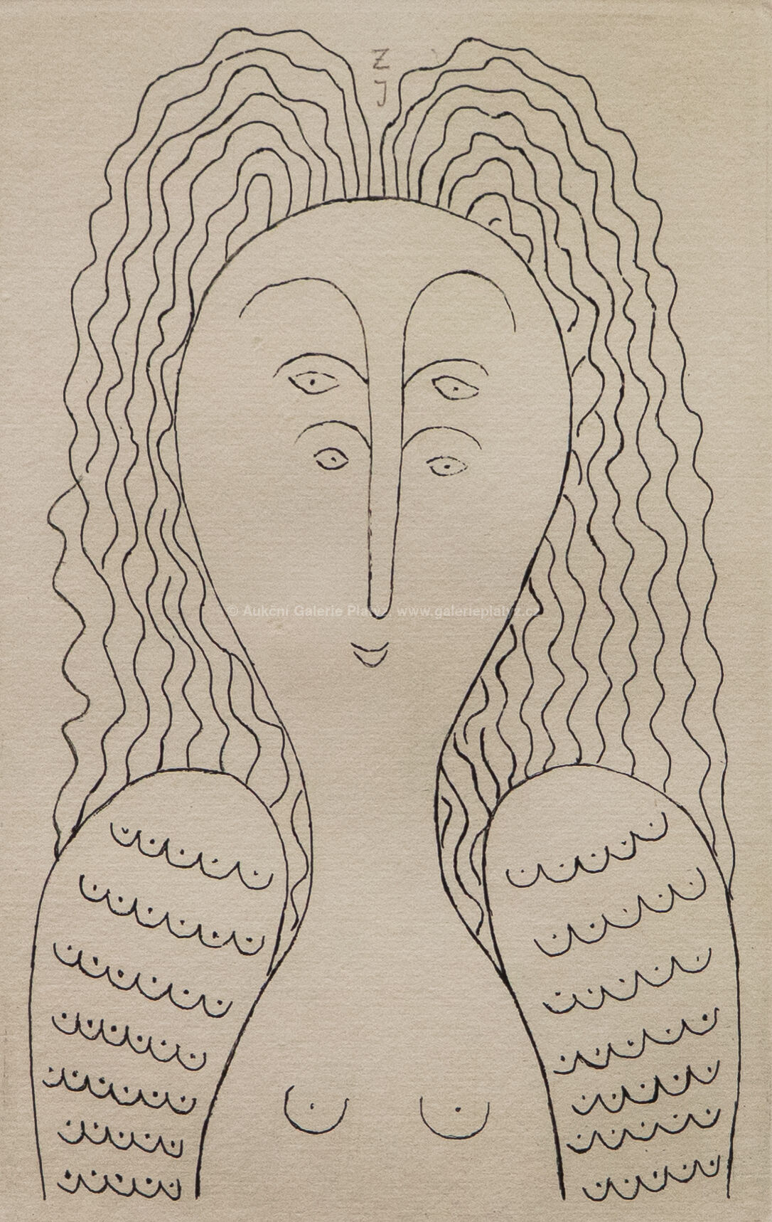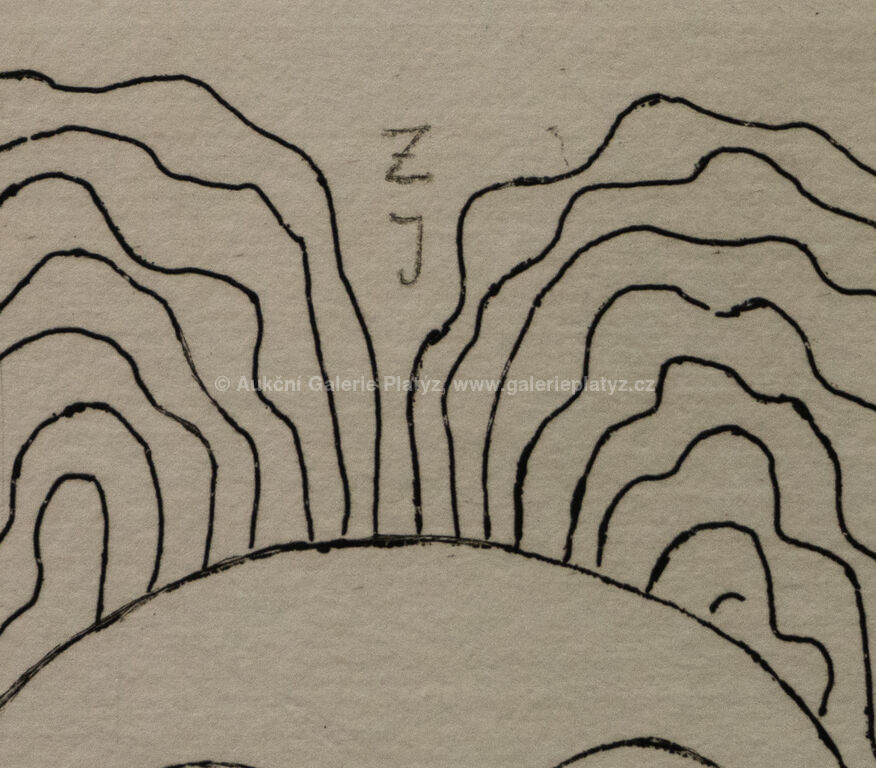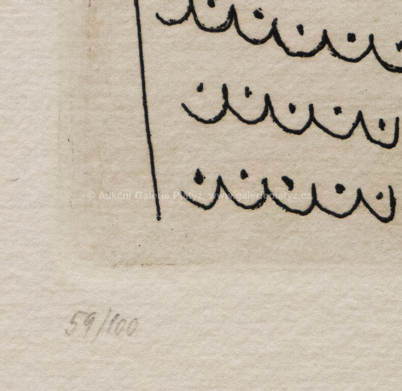 lept/papír, rozměr ve výřezu 26 x 17,5 cm, značeno v horní části v tisku, značeno a číslováno ve spodní části tužkou, paspartováno, zaskleno, rámováno