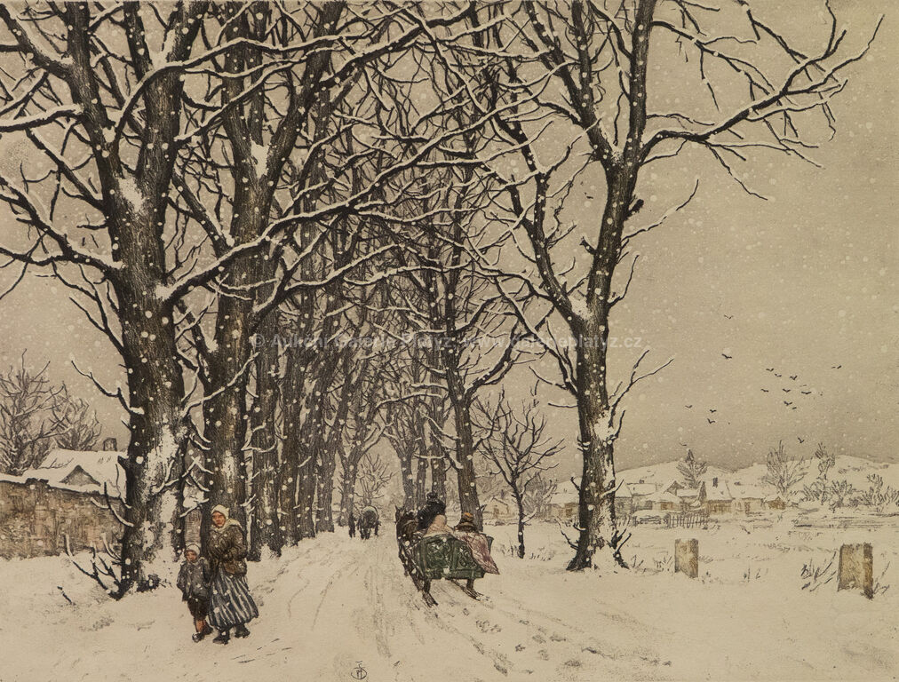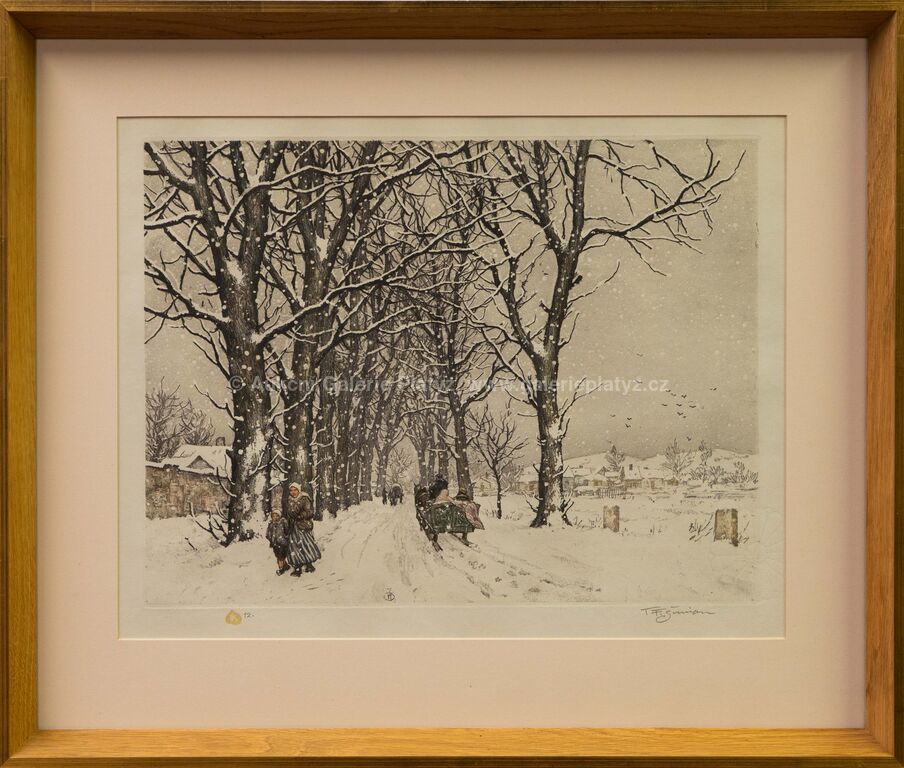 lept/papír, rozměr ve výřezu 30,5 x 39 cm, značeno vpravo dole, číslováno a autorská pečeť vlevo dole, paspartováno, zaskleno, rámováno