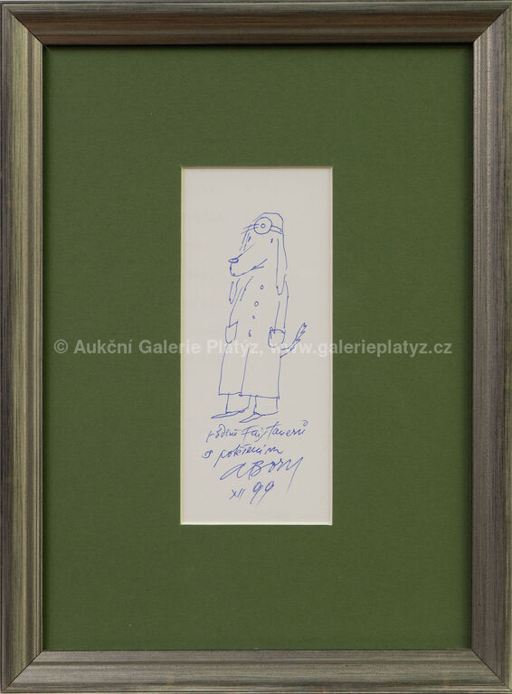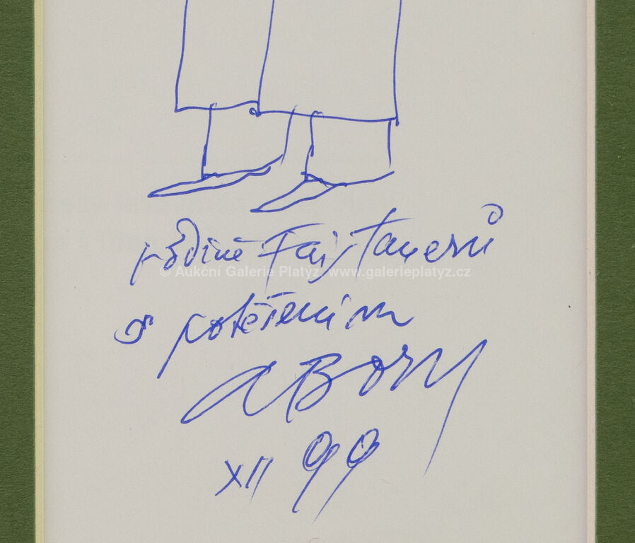 propiska/papír, rozměr ve výřezu 16,5 x 7 cm, značeno, datováno a popsáno ve spodní části, paspartováno, zaskleno, rámováno
